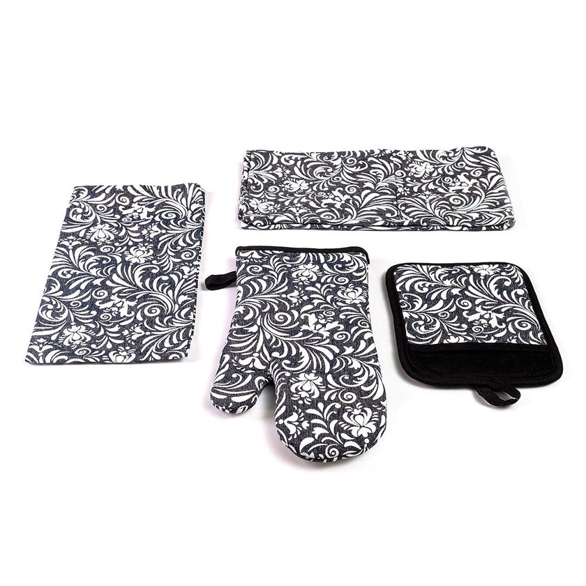 Kit De Cocina Negro Guante Para Horno, Sujeta Ollas , Paño De Cocina , Delantal