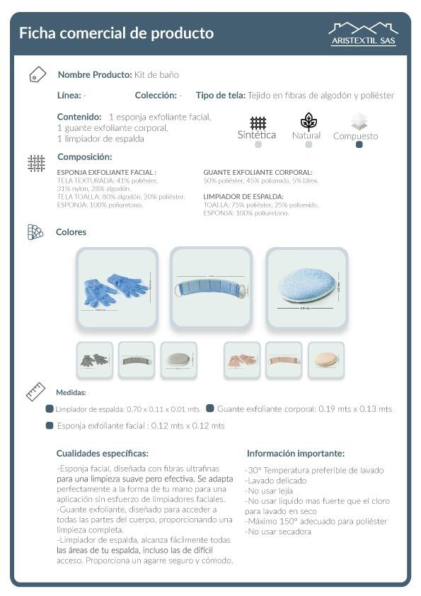 Kit De Baño Azul Limpiador De Espalda, Esponja Exfoliante Facial, Guante Exfoliante Corporal