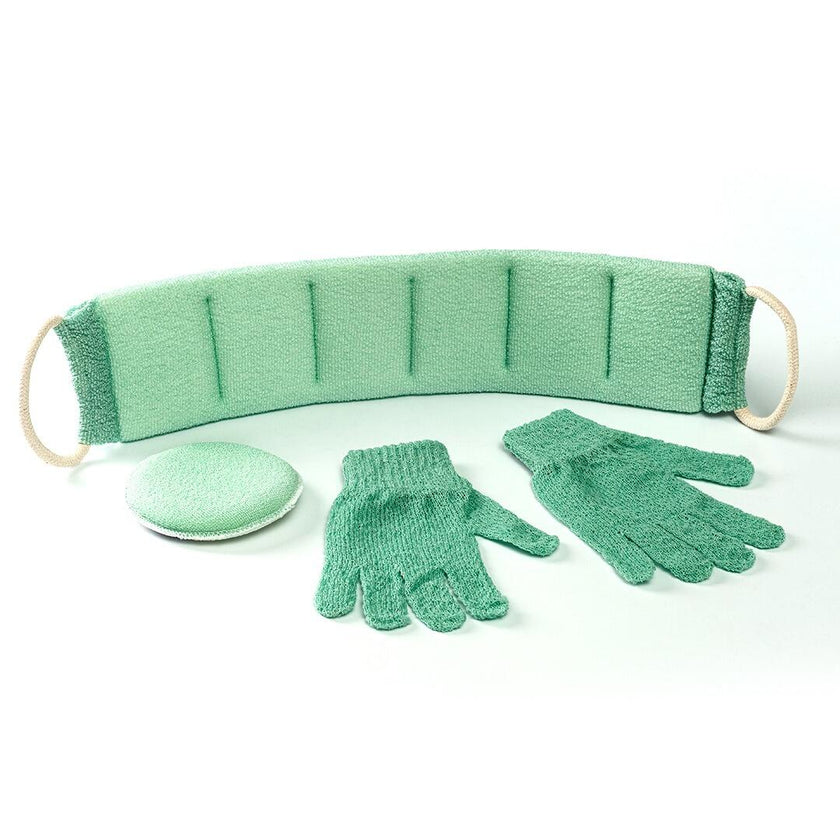 Kit De Baño Verde Limpiador De Espalda, Esponja Exfoliante Facial, Guante Exfoliante Corporal