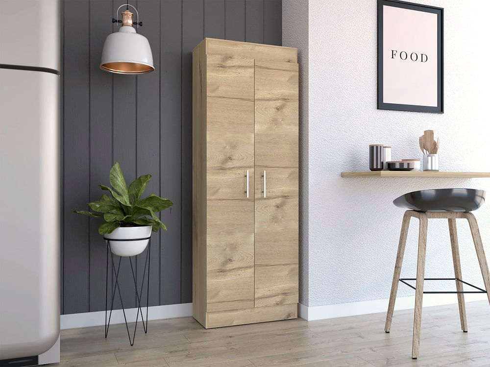 Alacena con dos puertas batientes, amplios espacios para almacenamiento, manijas de acero con medidas de: ANCHO 60 ALTO 169,9 PROFUNDO 30,3