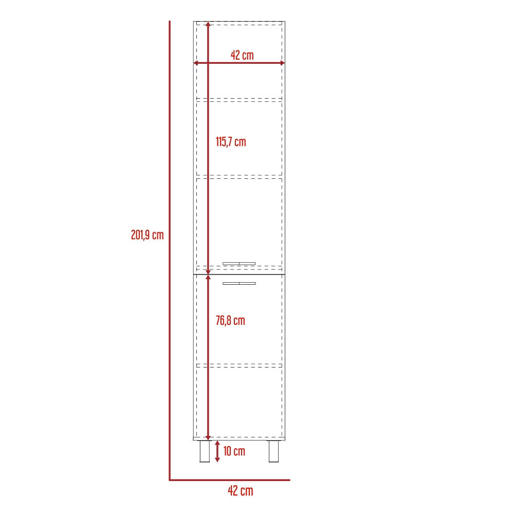 Alacena de puertas abatibles, Amplio espacio para almacenamiento, patas metálicas en acero negro. Posee unas medidas de: Alto: 201, Ancho: 42,1, Fondo: 40,3 cm. Y un peso en kg de: 35,6. NO INCLUYE ARMADO, Hecho de madera aglomerada, limpiar en seco, no productos abrasivos, ni humedad alta , La foto de este producto ha sido ambientada, por lo cual no incluye ningún adorno, ni accesorios, ni piezas adicionales ni ningún otro elemento que lo acompañan. El color presentado en la fotografía es una aproximación al color real.