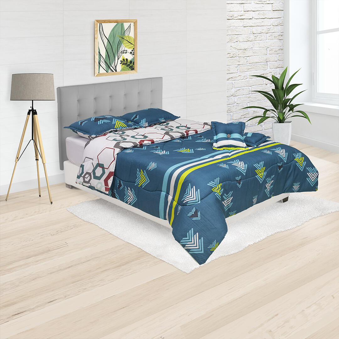 Contenido | 1 cubrelecho doble faz, 2 fundas para almohada, 2 cojines decorativos.(El estampado de las fundas puede variar. La medida sencilla solo contiene 1 Funda y 1 Cojin decorativo) |