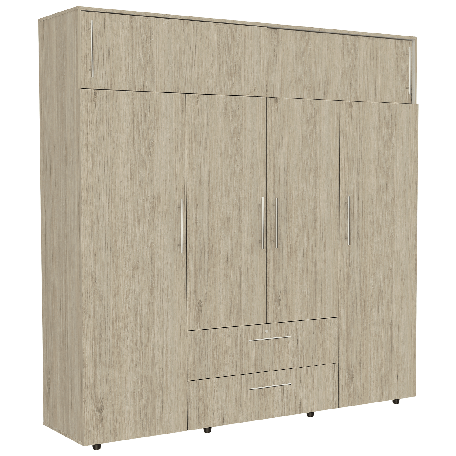 Closet con dos puertas corredizas, cuatro puertas abatibles y cuatro cajones. Tres tubos para colgar ropa y amplios espacios para almacenar ropa y zapatos. Medidas en Centimetros: Alto: 204 Ancho:200 Largo: 50,3 NO INCLUYE ARMADO, Hecho de madera aglomerada, limpiar en seco, no productos abrasivos, ni humedad alta , La foto de este producto ha sido ambientada, por lo cual no incluye ningún adorno, ni accesorios, ni piezas adicionales ni ningún otro elemento que lo acompañan. El color presentado en la fotografía es una aproximación al color real.