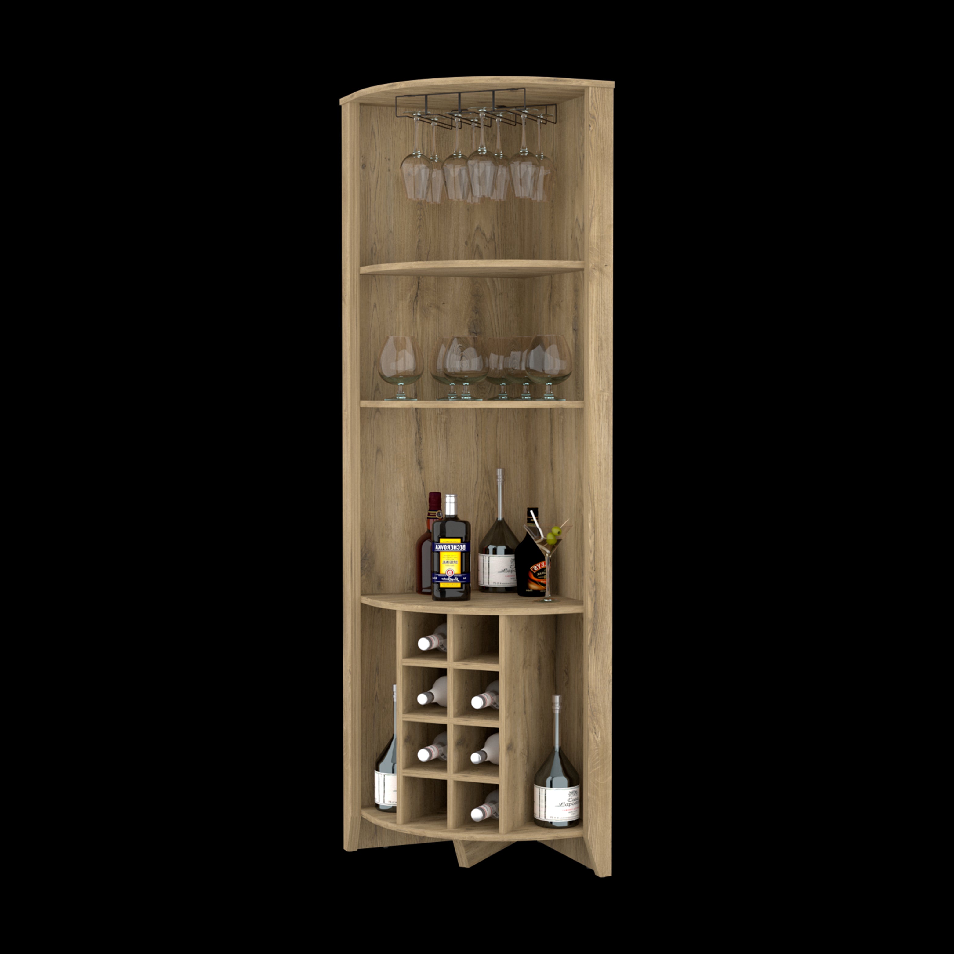 Bar esquinero incluye colgador de copas, espacios para organizar licores, espacios para objetos decorativos con medidas de: ANCHO 49 ALTO 180,6 PROFUNDO 49