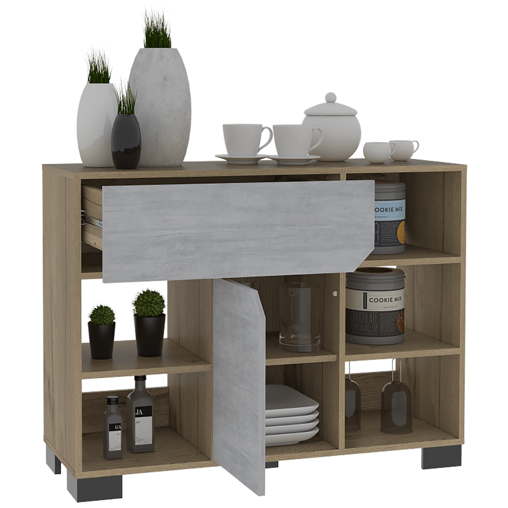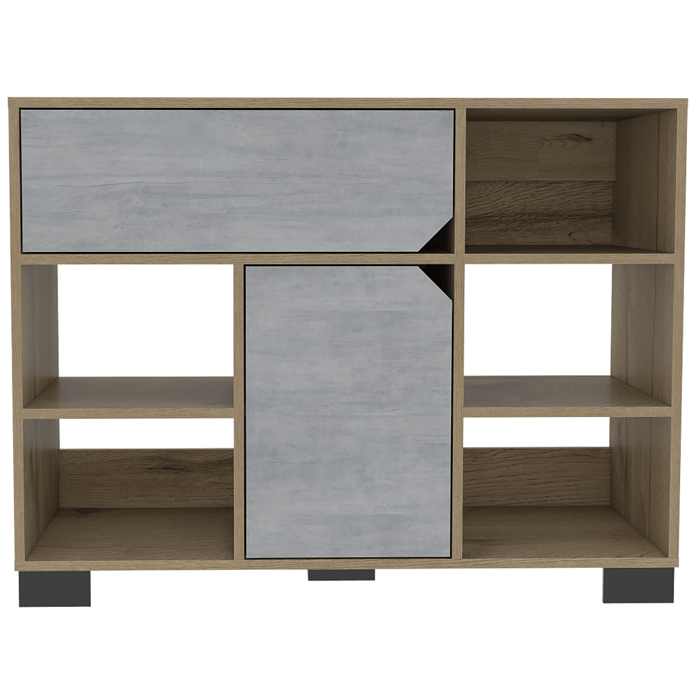 Un cajón extensión total y una puerta batiente de apertura sin manija. Múltipes entrepaños y superficies para ubicar objetos. Posee unas medidas en CM de: Alto:74,2 Ancho: 97,6 Fondo:35,6 y un peso en KG de: 31 NO INCLUYE ARMADO, Hecho de madera aglomerada, limpiar en seco, no productos abrasivos, ni humedad alta , La foto de este producto ha sido ambientada, por lo cual no incluye ningún adorno, ni accesorios, ni piezas adicionales ni ningún otro elemento que lo acompañan. El color presentado en la fotografía es una aproximación al color real.
