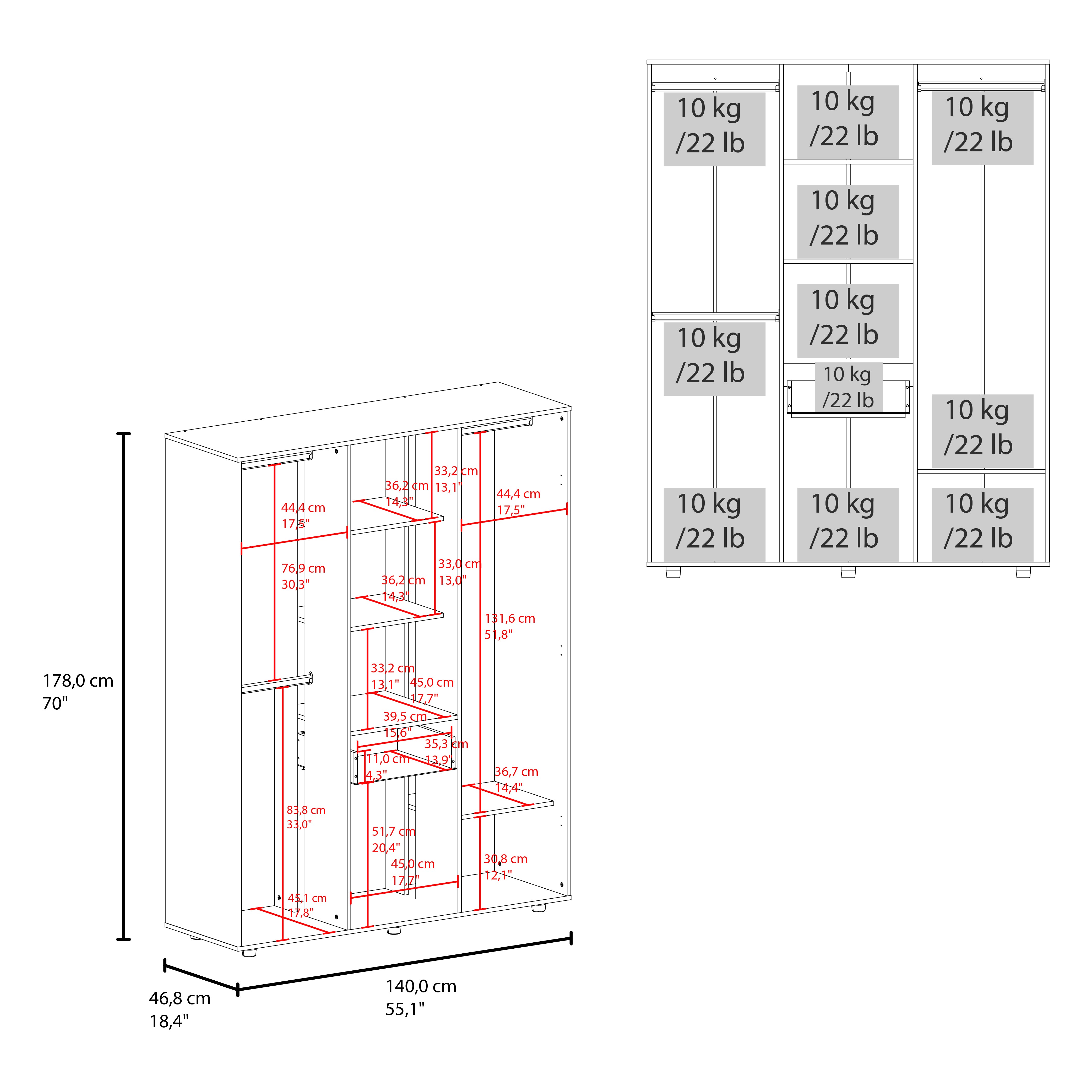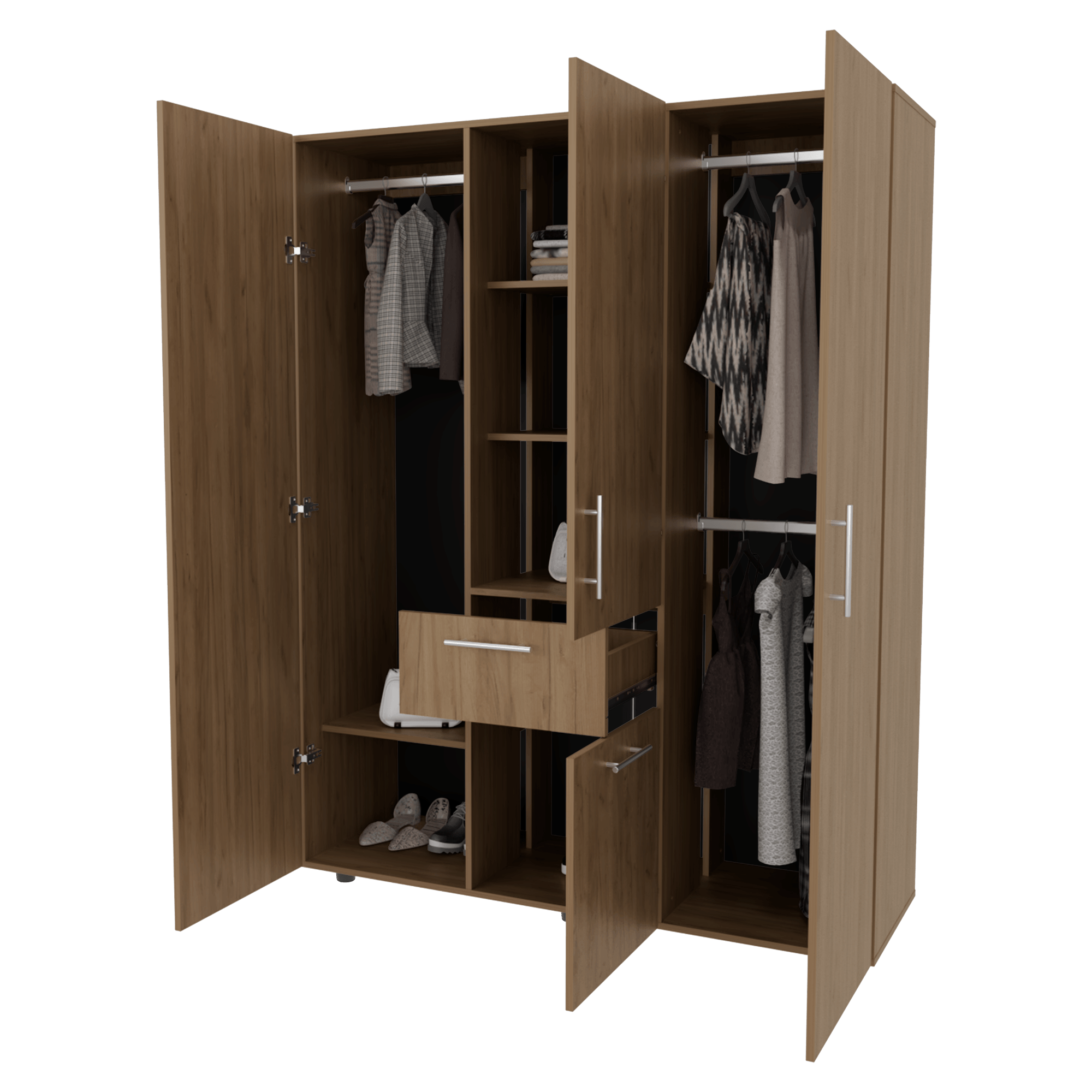Closet con tres puertas abatibles, tres tubos olvalados para colgar ropa, 1 cajon organizador, amplios espacios para guardar ropa, con medidas de ALTO 178 ANCHO 148 FONDO 46