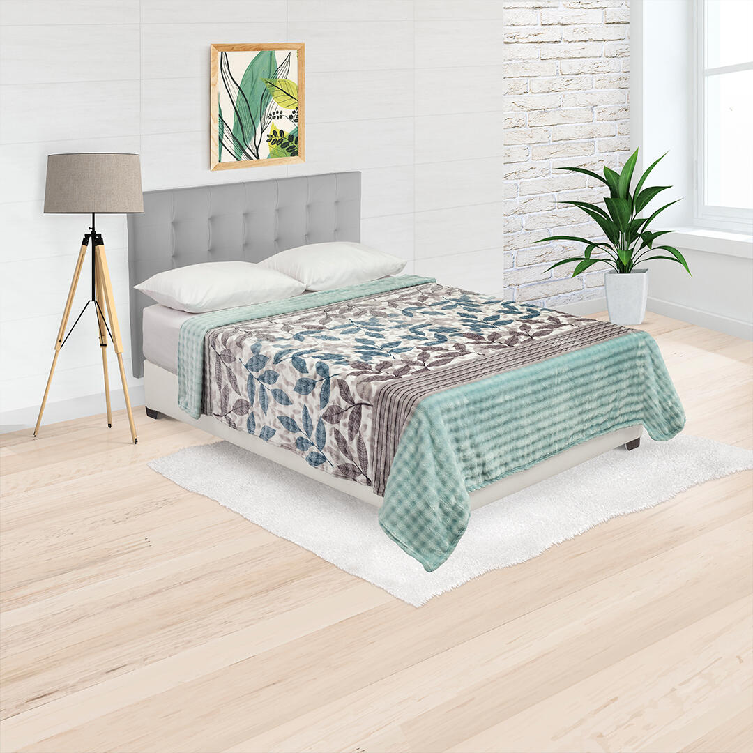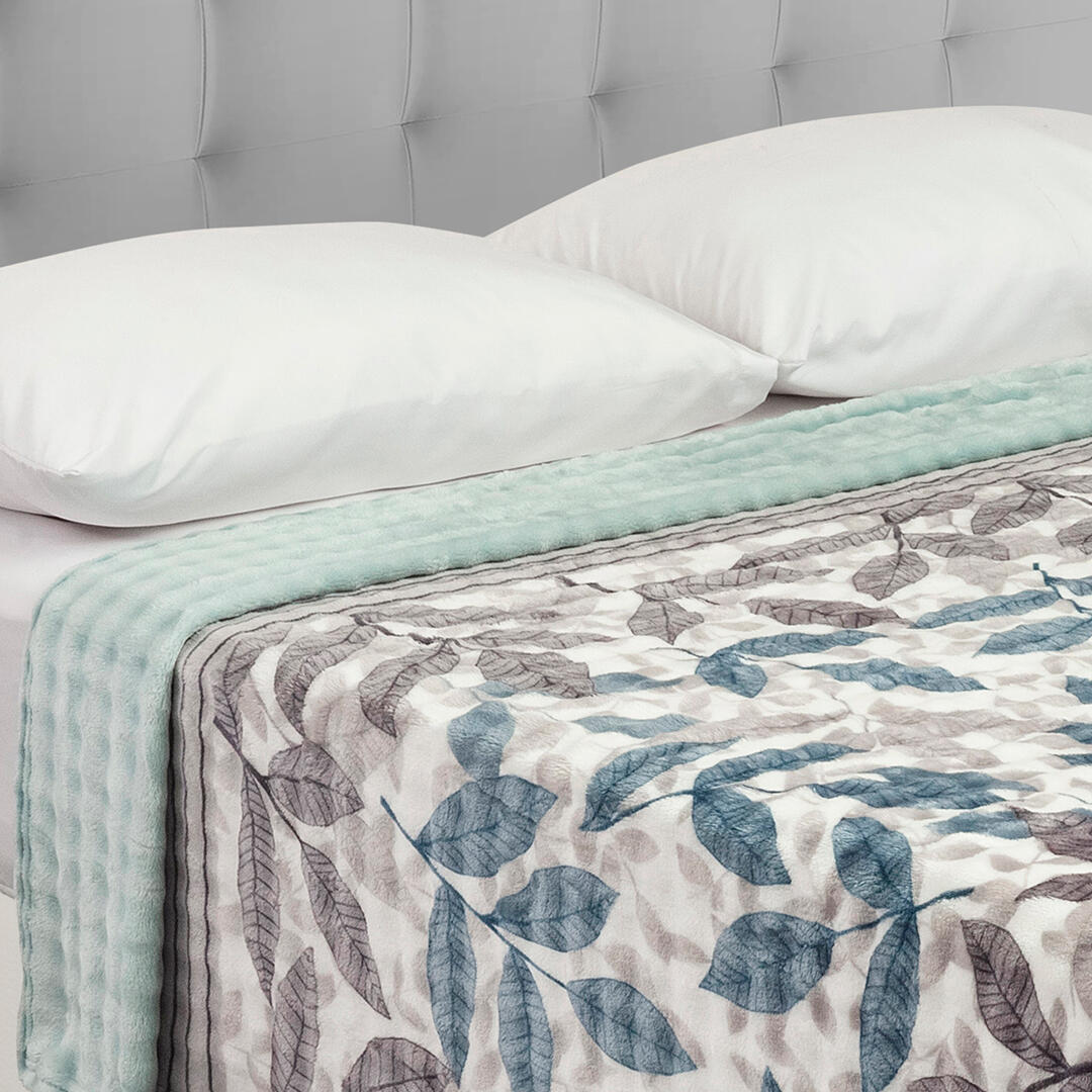 Cobija Burbuja Aguamarina Blanco Hojas Acogedoras