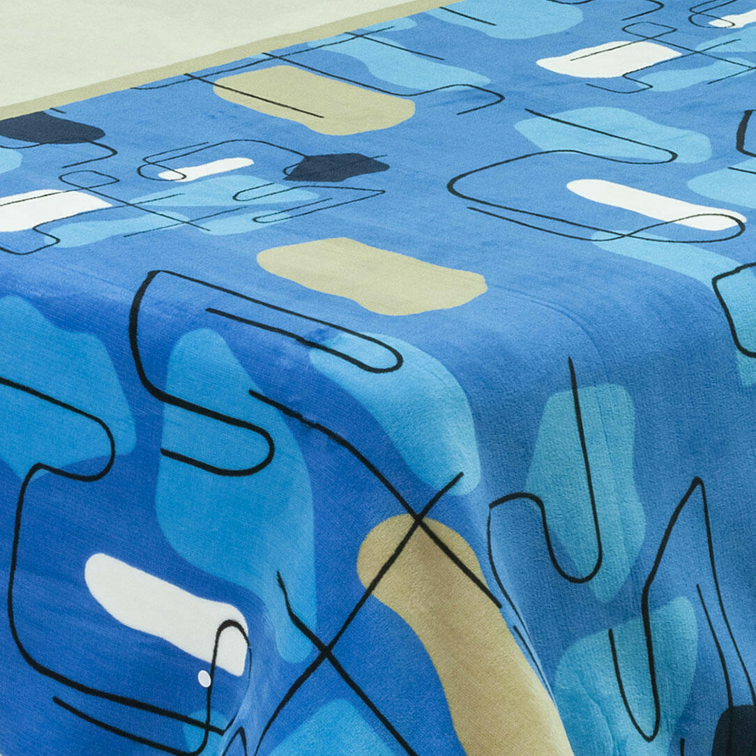 Cobija Ovejera Estampada Azul Beige - Blanca Figuras Suave