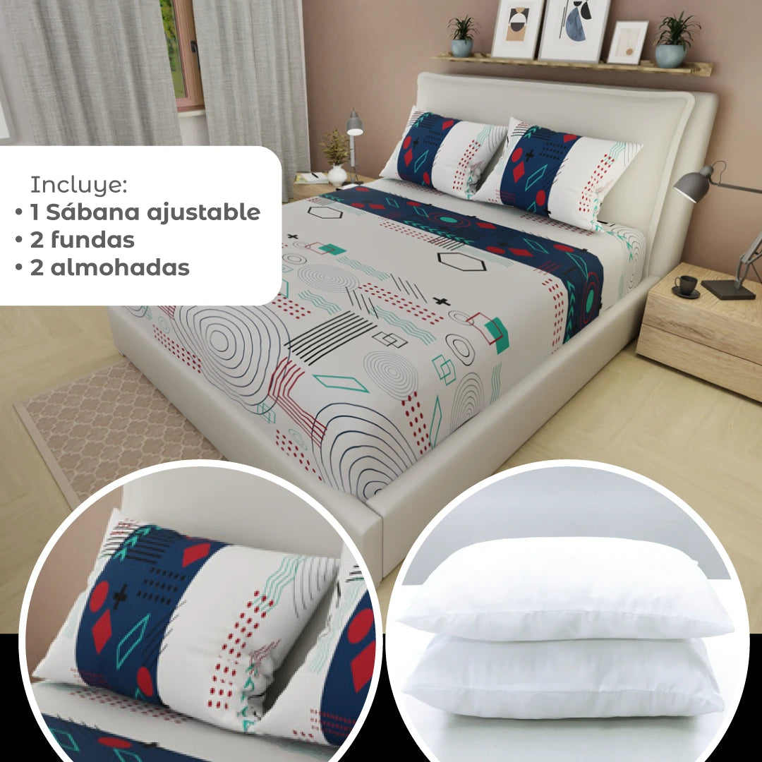 El Combo 5 en 1 es la combinación ideal para transformar tu descanso con comodidad y estilo. Incluye una sábana ajustable que se adapta perfectamente al colchón sin arrugas, dos fundas suaves que complementan la estética de tu cama y dos almohadas mullidas que brindan el soporte ideal para un sueño reparador. Este combo reúne los productos más populares en una sola compra, ofreciéndote calidad, confort y practicidad para renovar tu espacio de descanso.