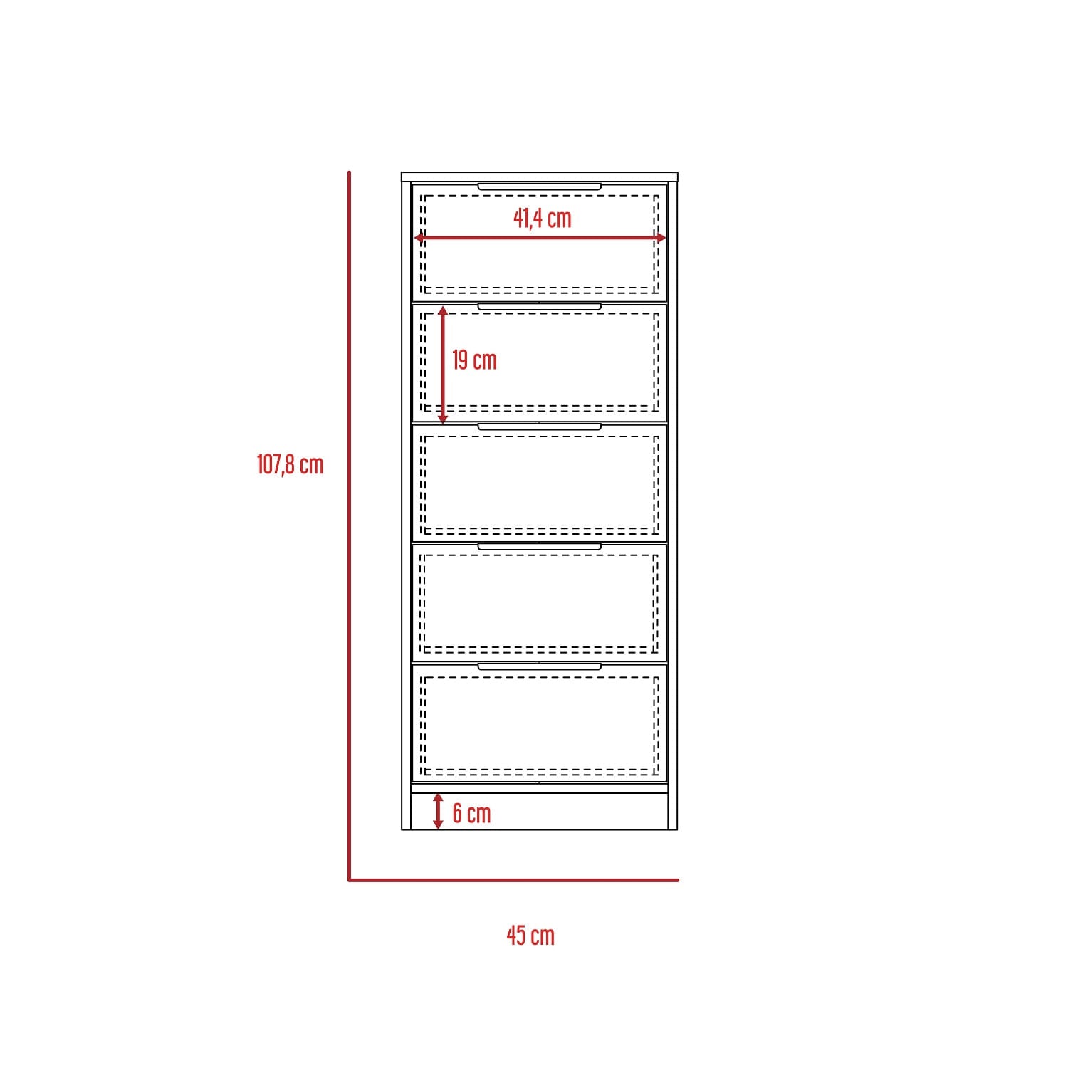 Cómoda con cinco cajones amplios, diseño con combinacion de colores moderna, manijas metálicas, y superficie para elementos decorativos. Hecho de madera aglomerada, limpiar en seco, no productos abrasivos, ni humedad alta , La foto de este producto ha sido ambientada, por lo cual no incluye ningún adorno, ni accesorios, ni piezas adicionales ni ningún otro elemento que lo acompañan. El color presentado en la fotografía es una aproximación al color real. Medidas en centímetros: Alto: 107 Ancho: 45 Profundo: 41,3 Peso: 27,8 Kg NO INCLUYE ARMADO, Hecho de madera aglomerada, limpiar en seco, no productos abrasivos, ni humedad alta , La foto de este producto ha sido ambientada, por lo cual no incluye ningún adorno, ni accesorios, ni piezas adicionales ni ningún otro elemento que lo acompañan. El color presentado en la fotografía es una aproximación al color real.
