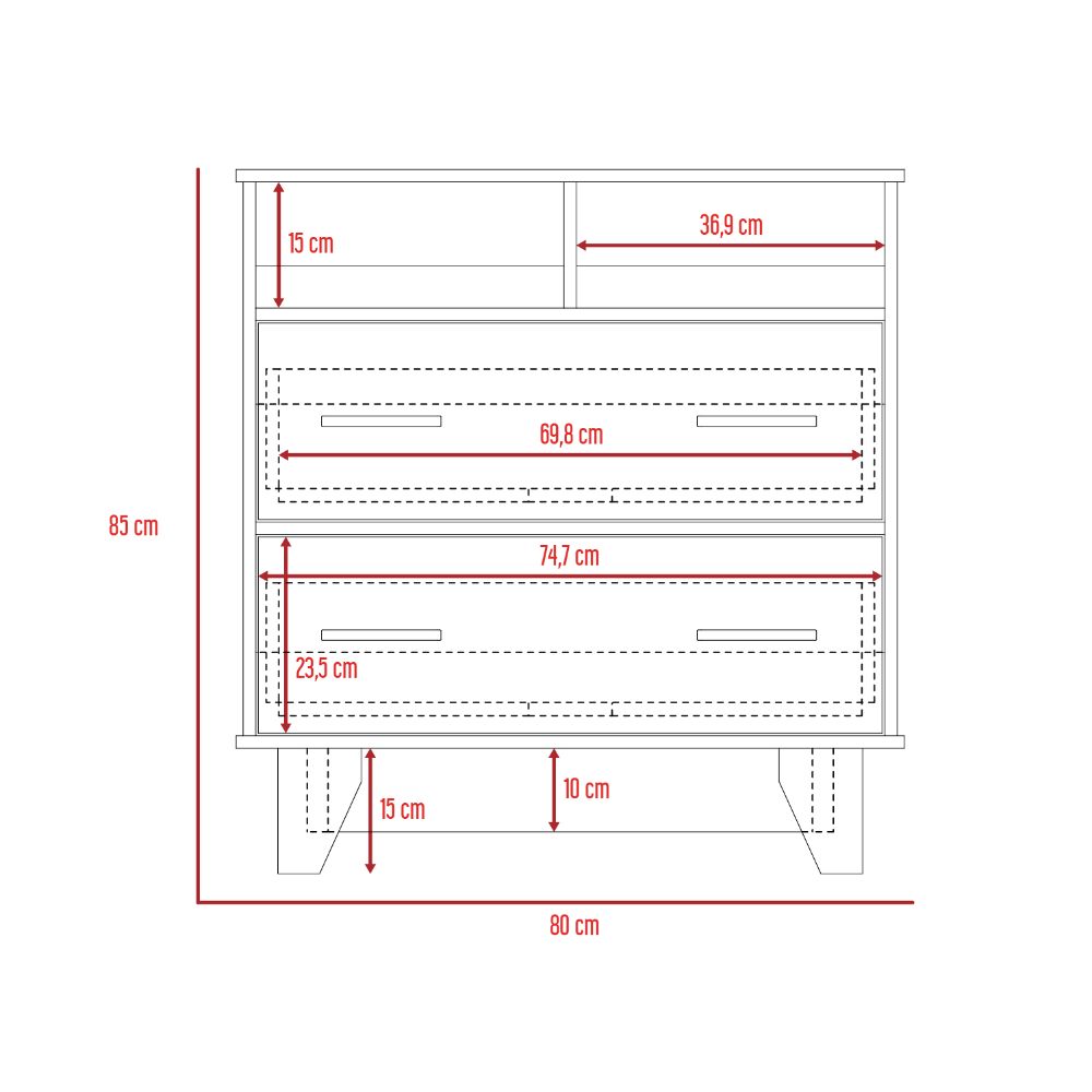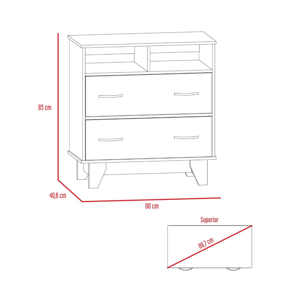 Superficie para elementos decorativos, manijas metálicas, dos cajones organizadores para guardar accesorios. Posee unas medidas en CM de: Alto: 85 Ancho:80 Fondo: 40,3 y un peso en KG de: 36,7 NO INCLUYE ARMADO, Hecho de madera aglomerada, limpiar en seco, no productos abrasivos, ni humedad alta , La foto de este producto ha sido ambientada, por lo cual no incluye ningún adorno, ni accesorios, ni piezas adicionales ni ningún otro elemento que lo acompañan. El color presentado en la fotografía es una aproximación al color real.