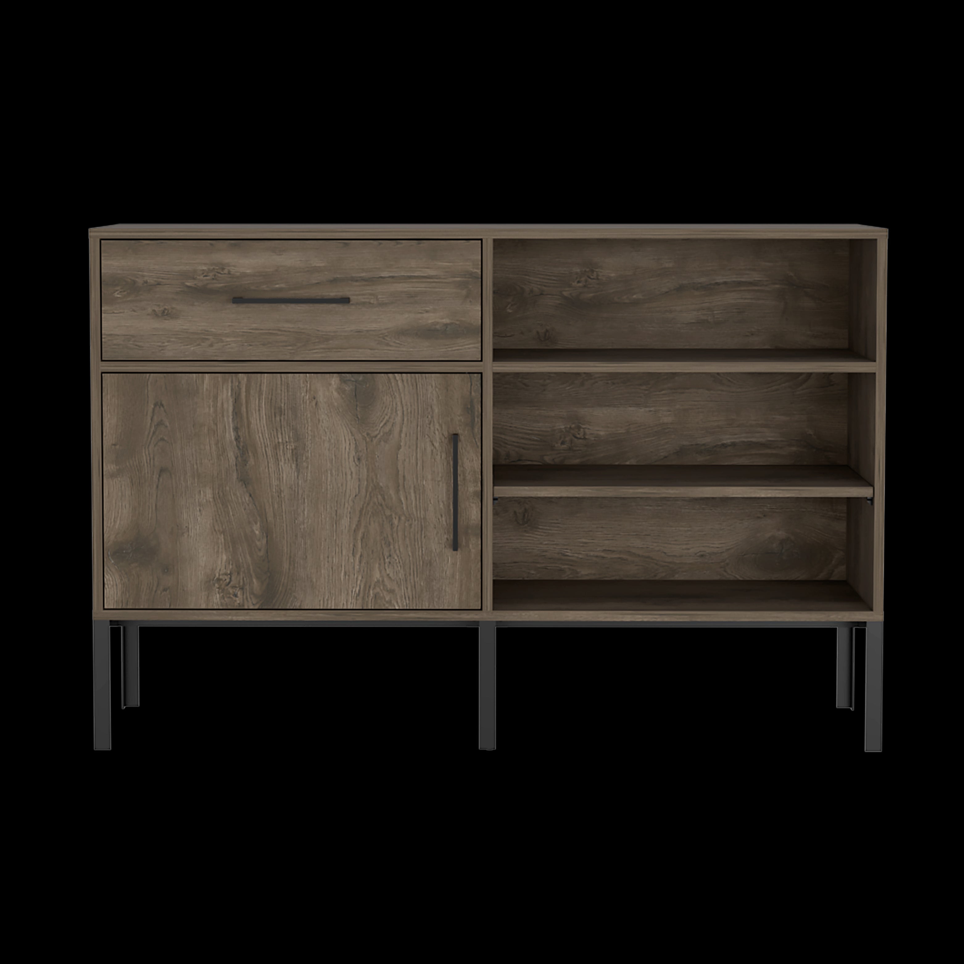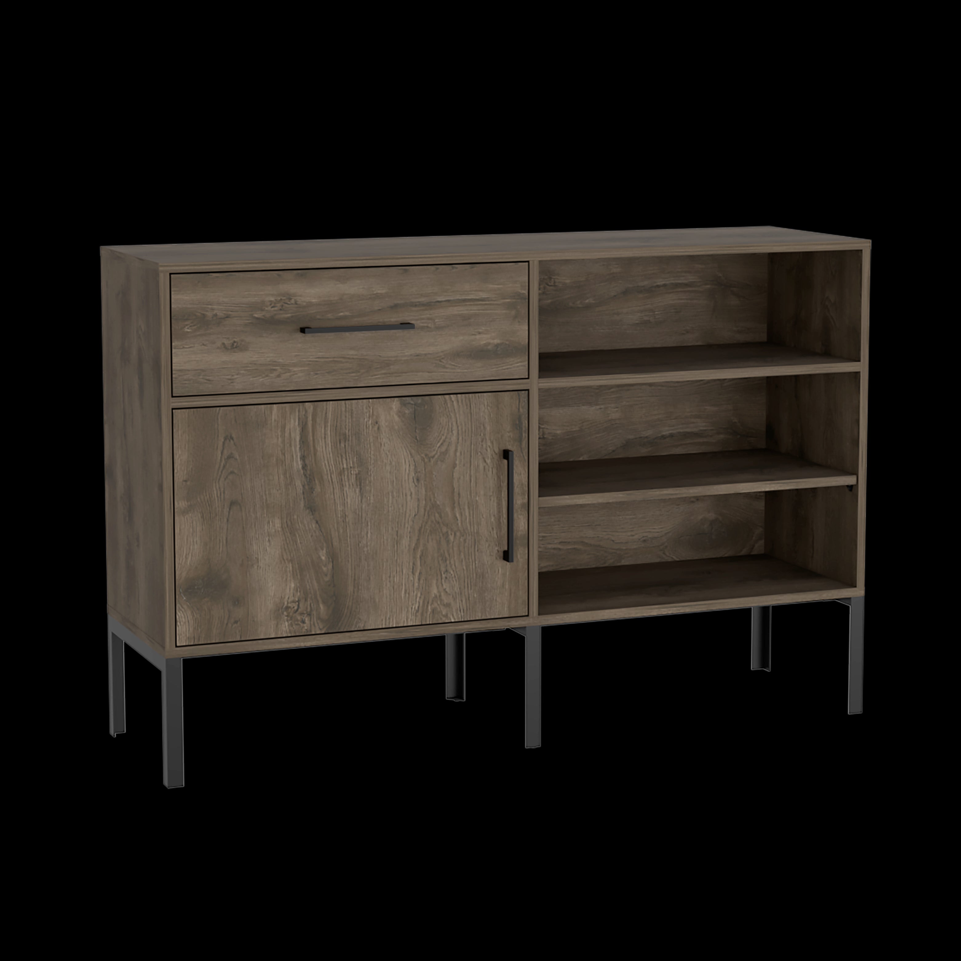 Consola con diseño moderno, un cajon y una puerta, base metalica con medidas de: ANCHO 129 ALTO 79,4 PROFUNDO 35
