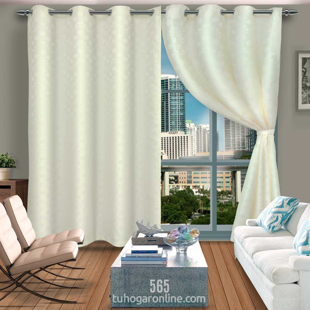 Cortina Argollada En Lona Blanco Hueso Puntos
