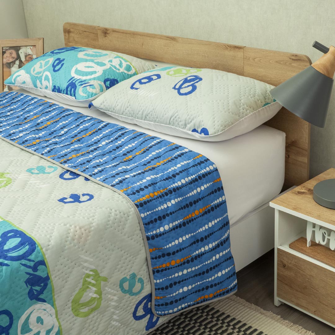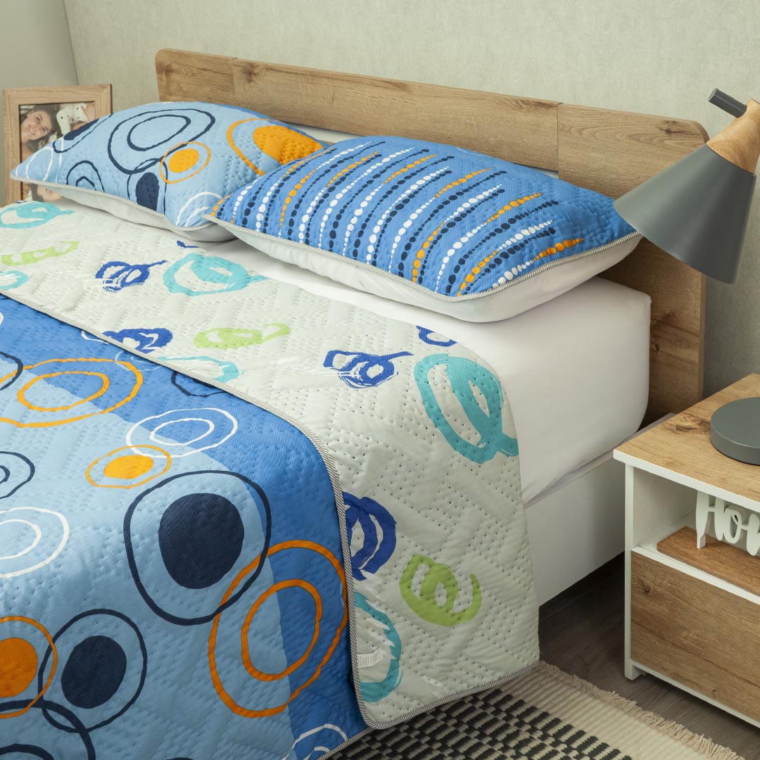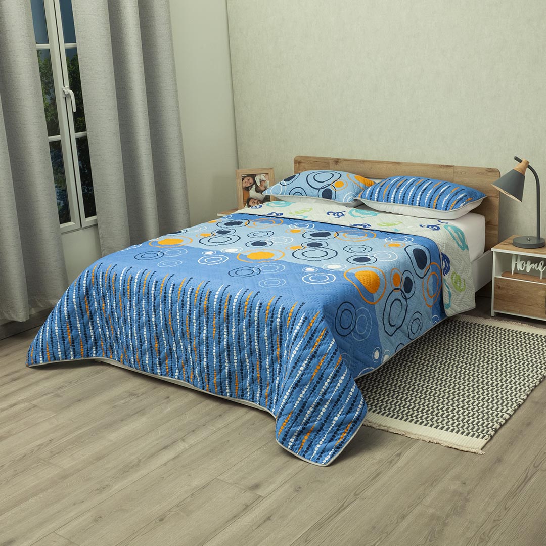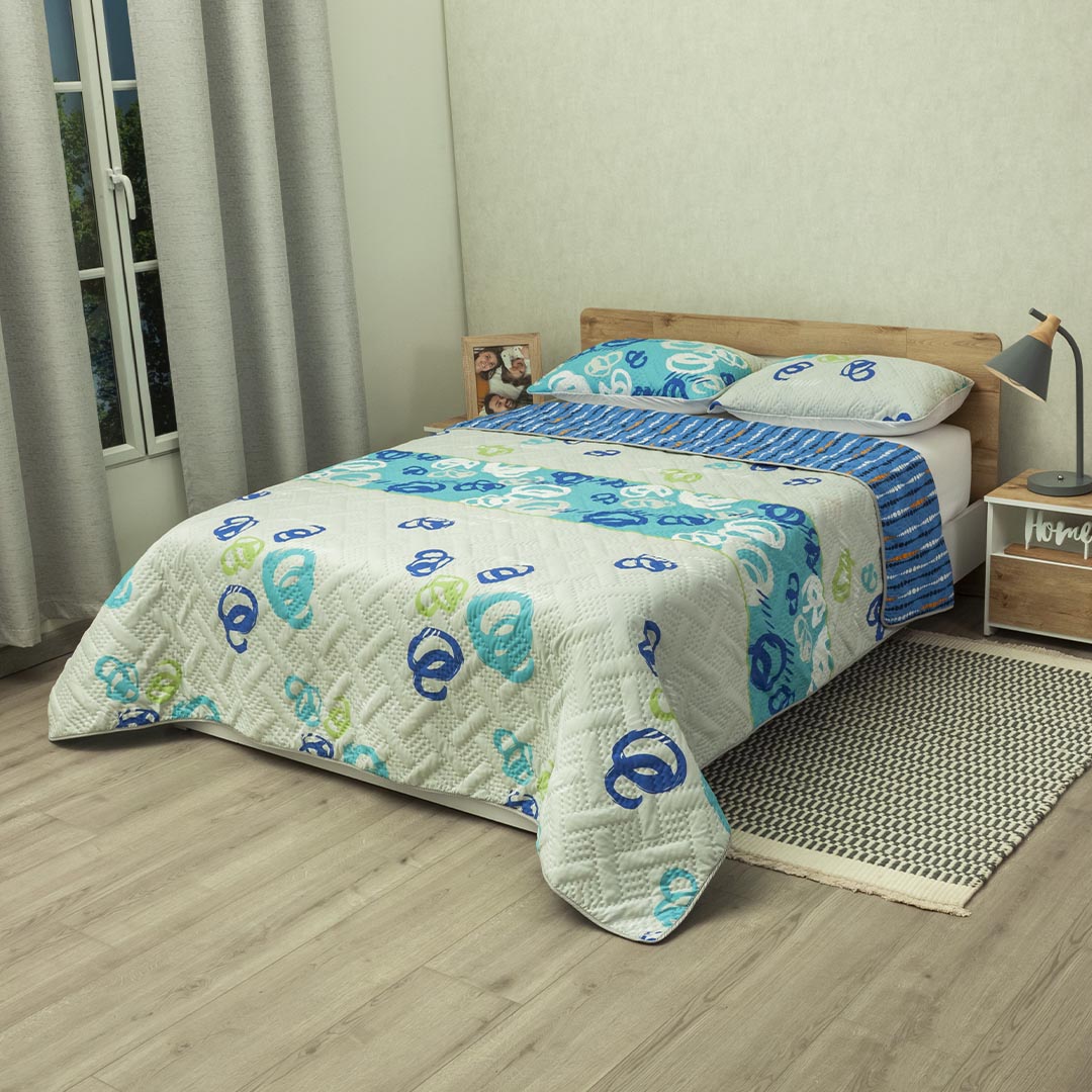 Cubrelecho Doble Faz Termosellado Flujo De Color Azul