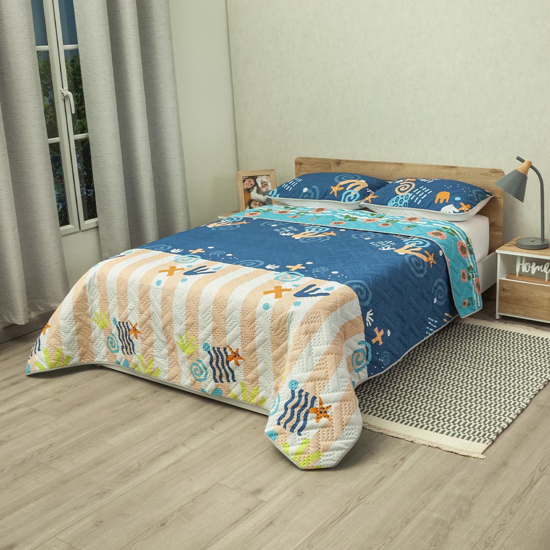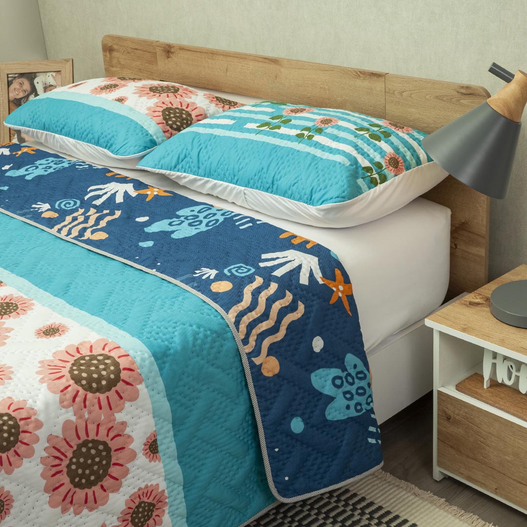 Cubrelecho Doble Faz Termosellado Verano Eterno Azul