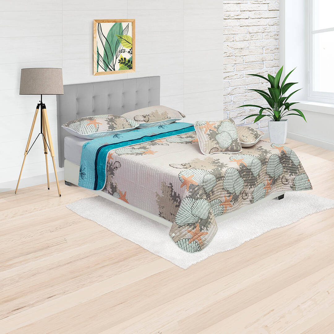 Cubrelecho Estampado Prensado Doble Faz Conchas Con Estrellas De Mar Fondo Palo De Rosa Confortable