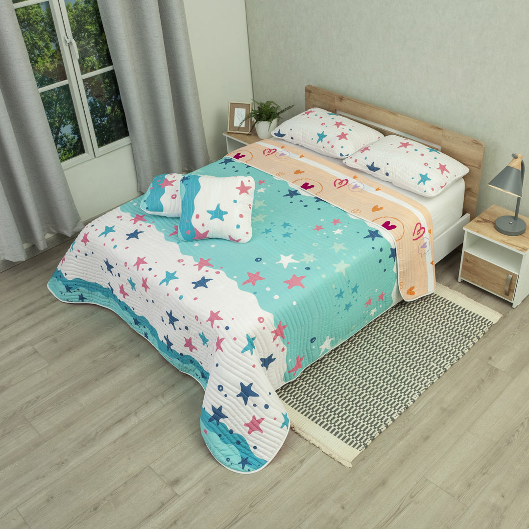 Cubrelecho Estampado Prensado Doble Faz Mar Estrellado