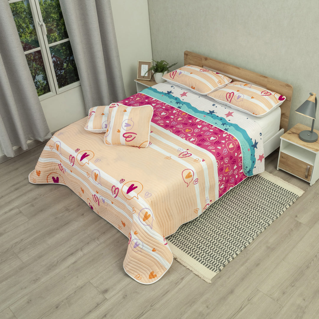 Cubrelecho estampado tipo prensado, con diseños hermosos y variados. Dale vida a las habitaciones de tu hogar con nuestros novedosos y originales cubrelechos. Trabajamos con la mejor calidad. Elaborado en microfibra suavizado, doble faz.