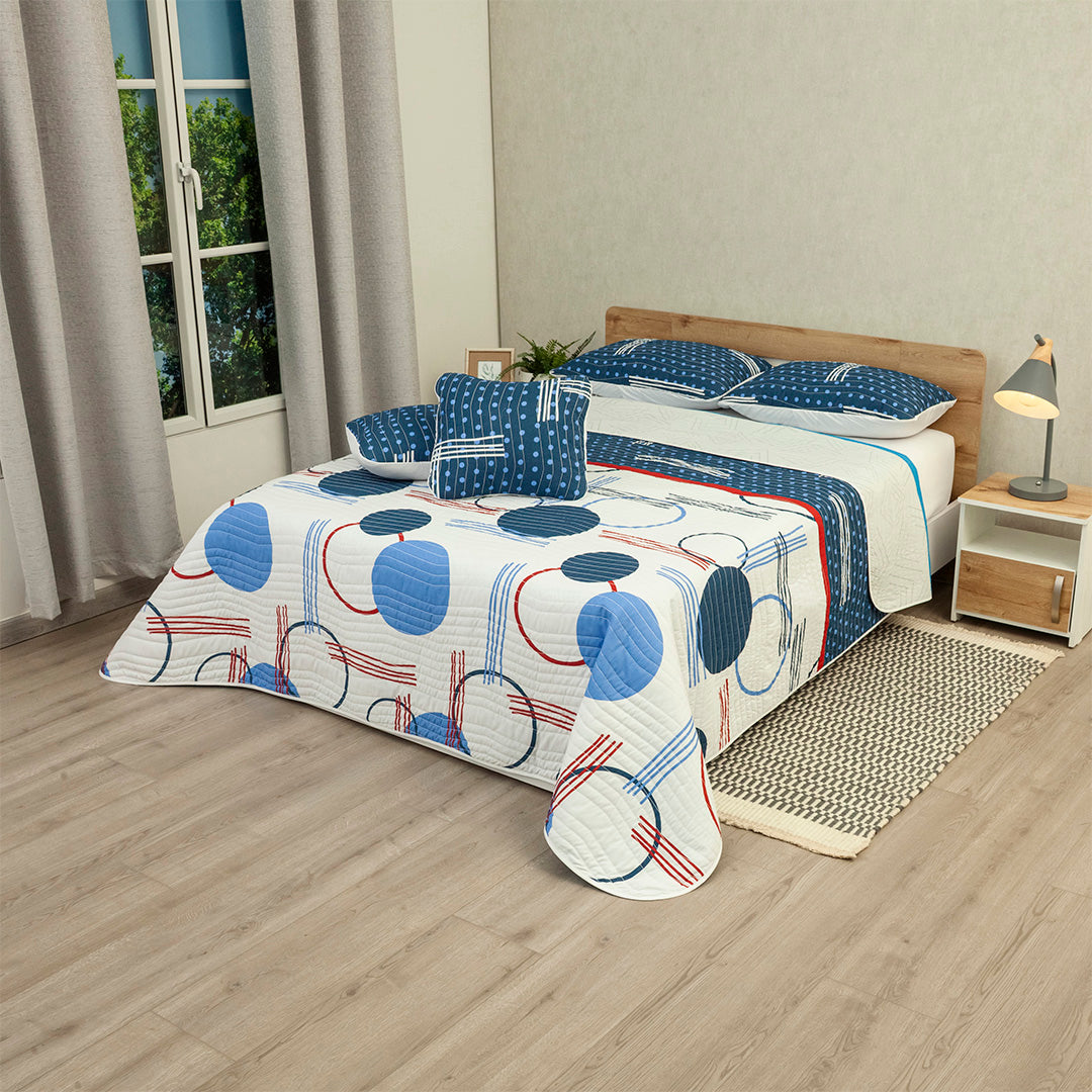 Cubrelecho Estampado Prensado Doble Faz Trazos Digitales Azul