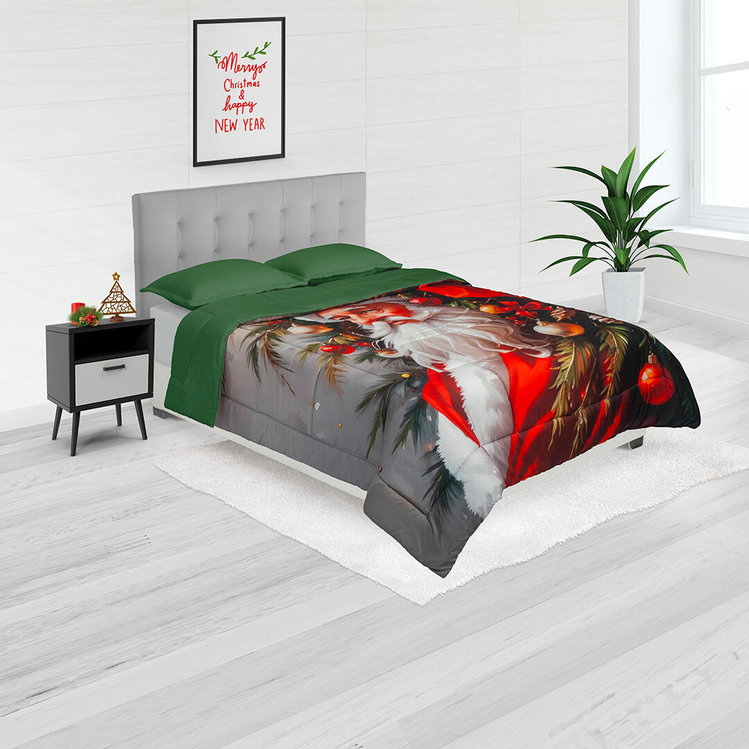 Cubrelecho Doble Faz Navidad De Papa Noel Solo Fondo Verde