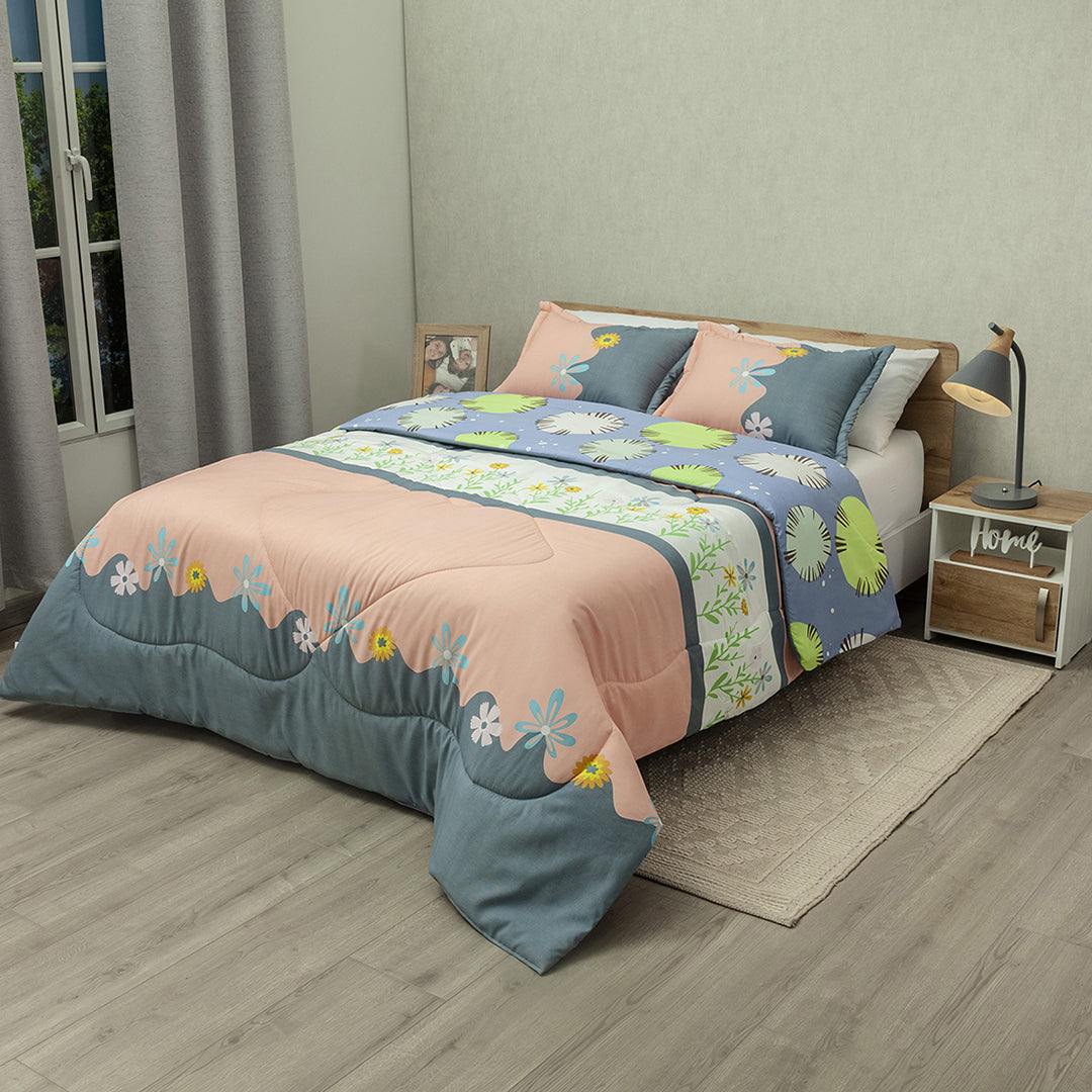 Dale a tu cama un toque de confort y estilo con nuestro cubrelecho semiacolchado doble faz. Fabricado en microfibra suavizada en algodón, es ligero, suave y perfecto para cualquier temporada. Su diseño estampado aporta personalidad a tu habitación, mientras que su doble faz te permite renovar el look de tu cama en un instante. Incluye dos fundas para almohada y juego, creando una armonía perfecta en tu espacio de descanso. Versátil y práctico, es el complemento ideal para un sueño placentero y un dormitorio siempre impecable.