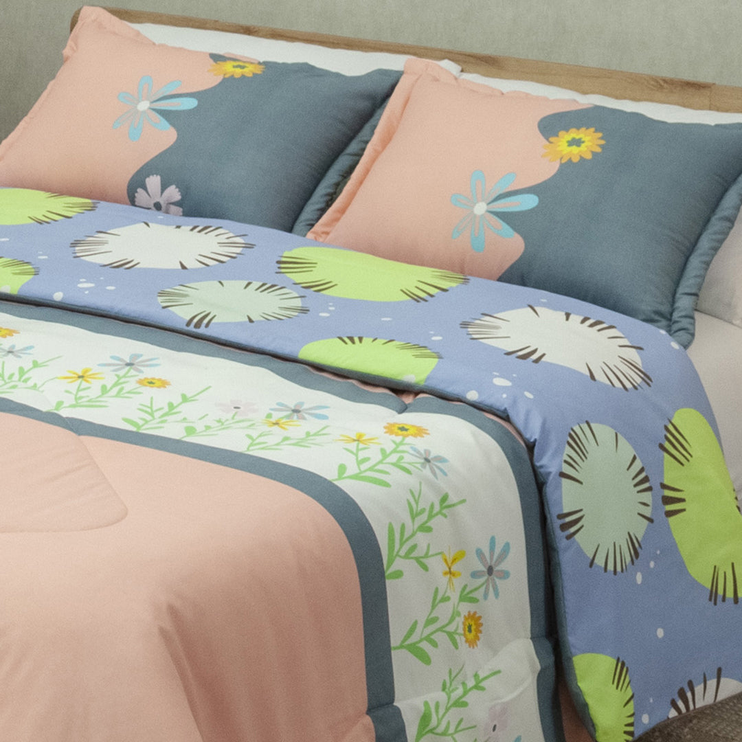 Contenido | 1 cubrelecho doble faz, 2 fundas para almohadas (El estampado de las fundas puede variar, La medida sencilla solo contiene 1 Funda) |