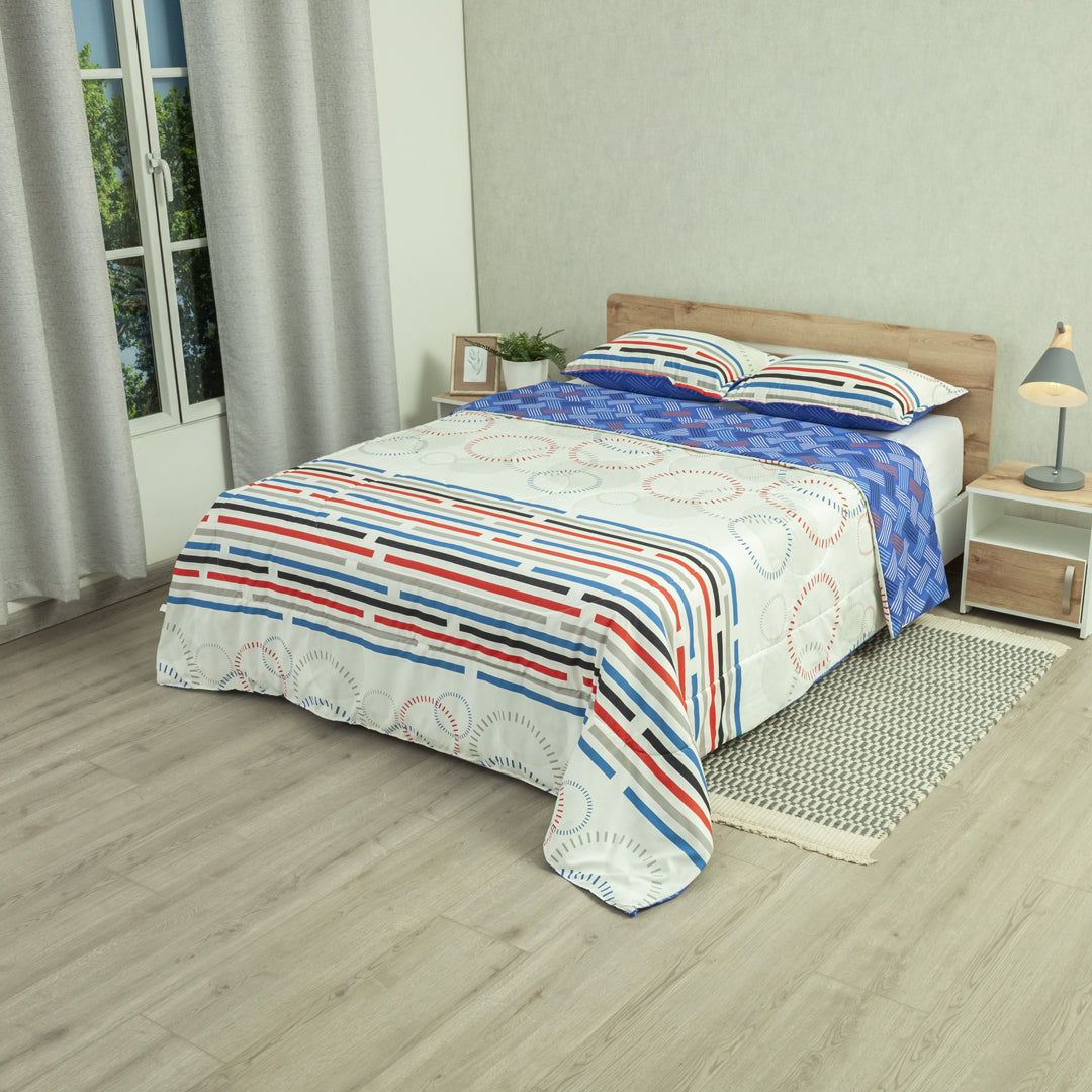 Dale a tu cama un toque de confort y estilo con nuestro cubrelecho semiacolchado doble faz. Fabricado en microfibra suavizada en algodón, es ligero, suave y perfecto para cualquier temporada. Su diseño estampado aporta personalidad a tu habitación, mientras que su doble faz te permite renovar el look de tu cama en un instante. Incluye dos fundas para almohada y juego, creando una armonía perfecta en tu espacio de descanso. Versátil y práctico, es el complemento ideal para un sueño placentero y un dormitorio siempre impecable.