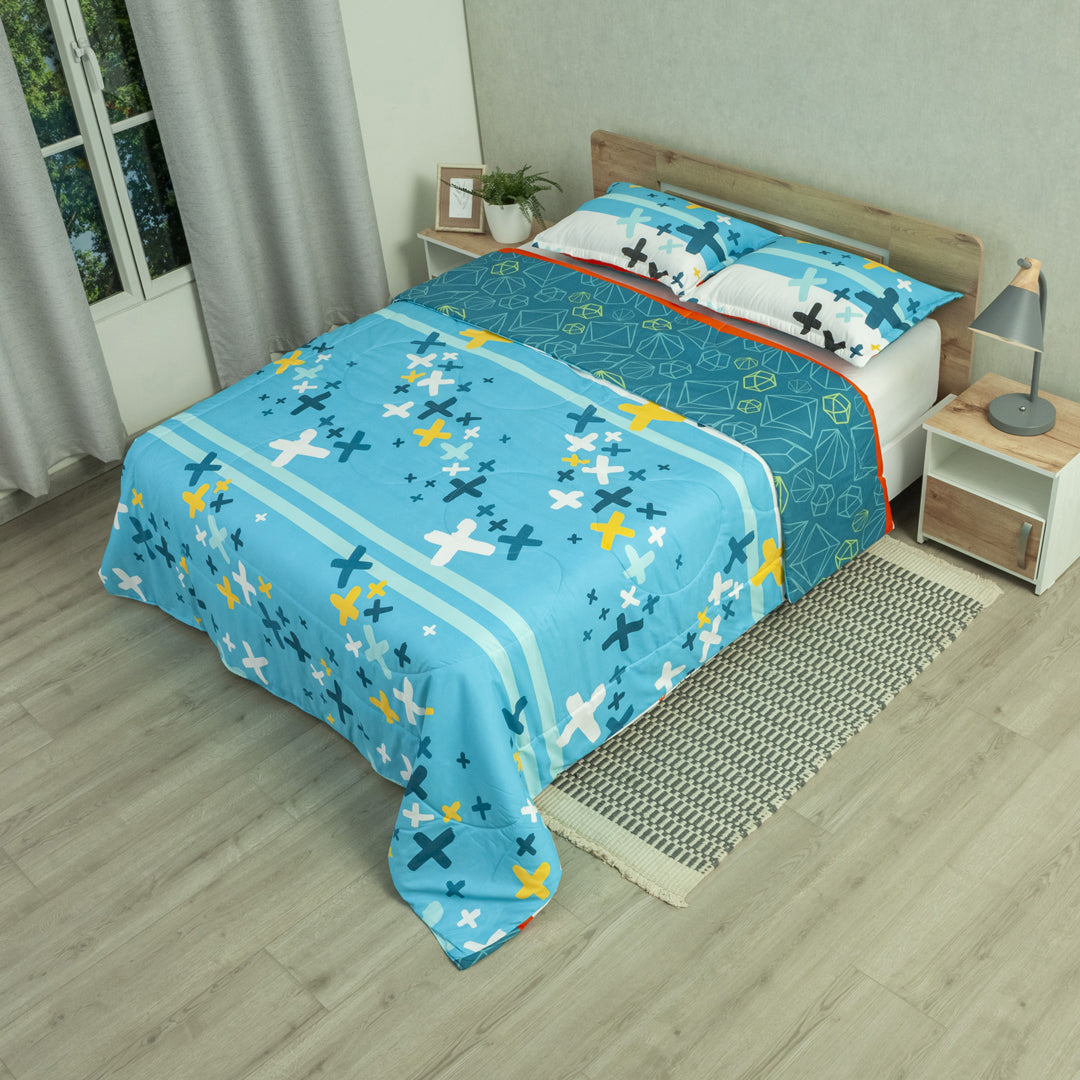Dale a tu cama un toque de confort y estilo con nuestro cubrelecho semiacolchado doble faz. Fabricado en microfibra suavizada en algodón, es ligero, suave y perfecto para cualquier temporada. Su diseño estampado aporta personalidad a tu habitación, mientras que su doble faz te permite renovar el look de tu cama en un instante. Incluye dos fundas para almohada y juego, creando una armonía perfecta en tu espacio de descanso. Versátil y práctico, es el complemento ideal para un sueño placentero y un dormitorio siempre impecable.