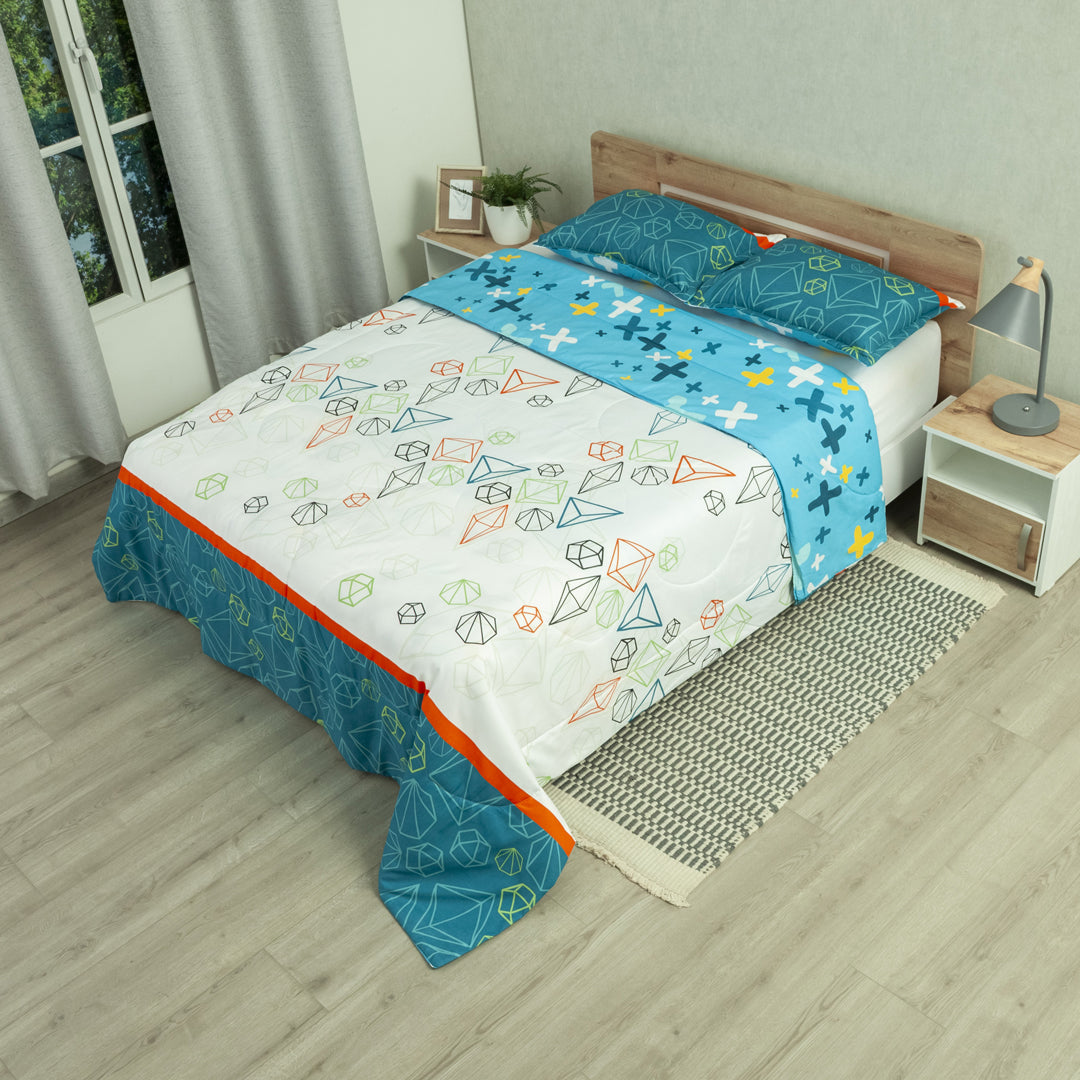 Cubrelecho Semiacolchado Doble Faz Primavera Geométrica