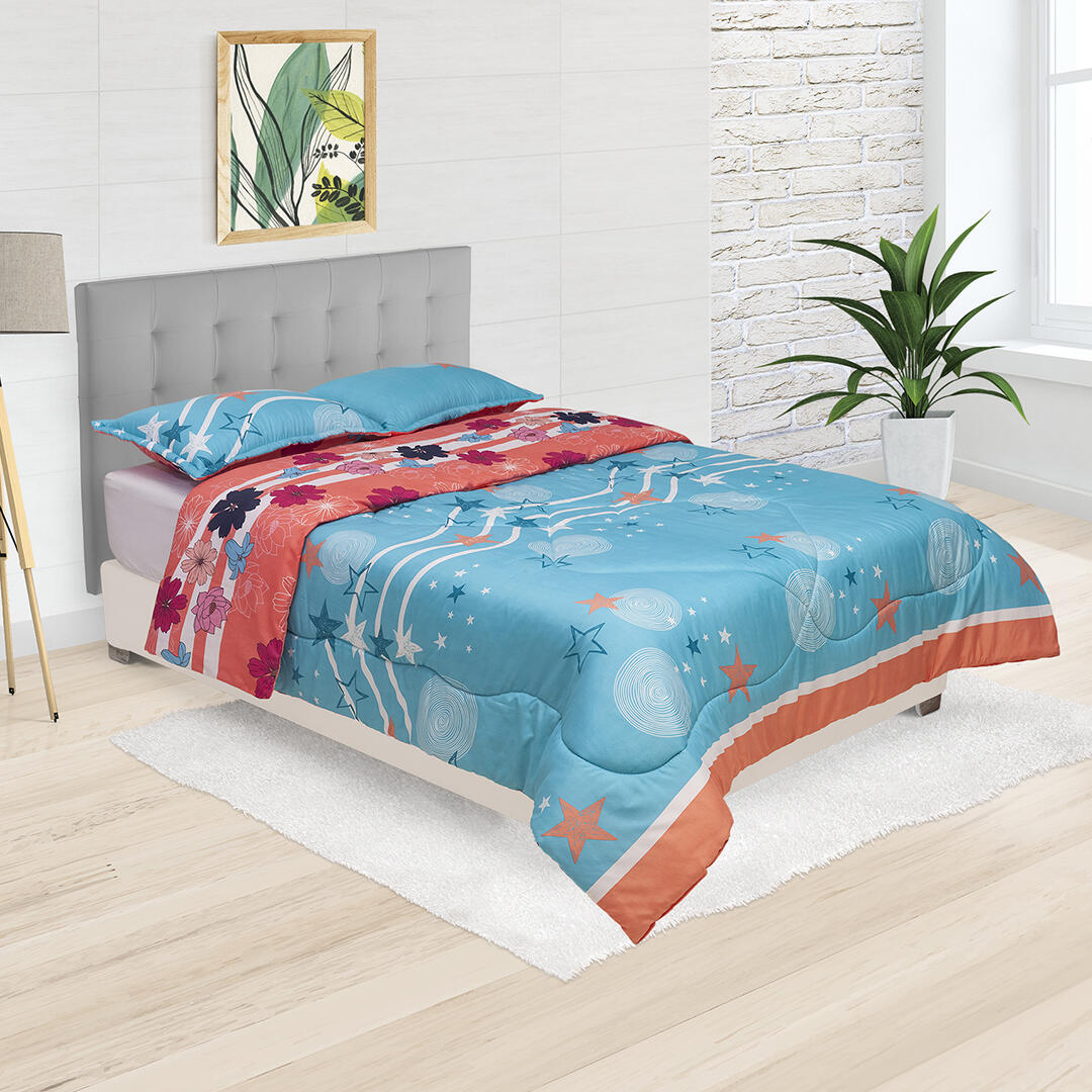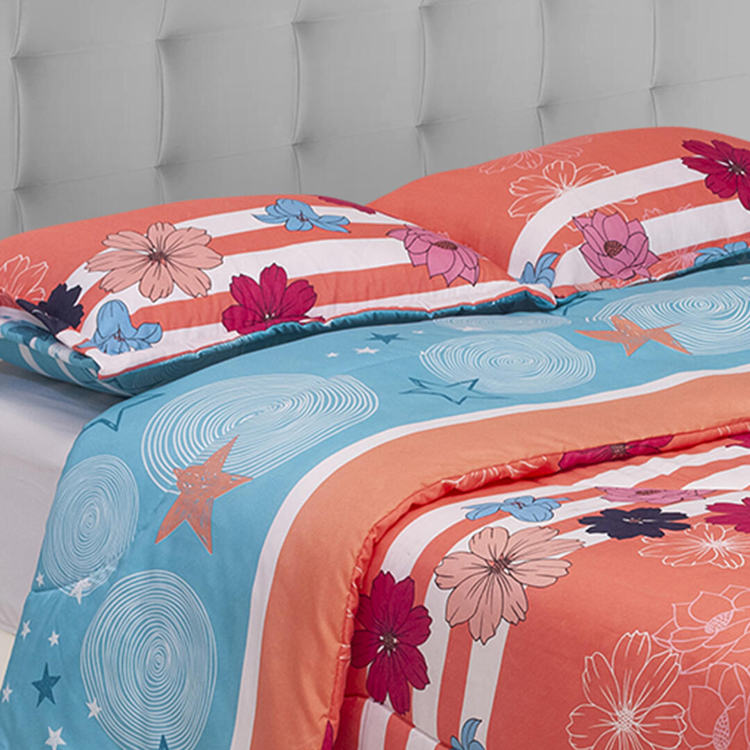 Dale a tu cama un toque de confort y estilo con nuestro cubrelecho semiacolchado doble faz. Fabricado en microfibra suavizada en algodón, es ligero, suave y perfecto para cualquier temporada. Su diseño estampado aporta personalidad a tu habitación, mientras que su doble faz te permite renovar el look de tu cama en un instante. Incluye dos fundas para almohada y juego, creando una armonía perfecta en tu espacio de descanso. Versátil y práctico, es el complemento ideal para un sueño placentero y un dormitorio siempre impecable.