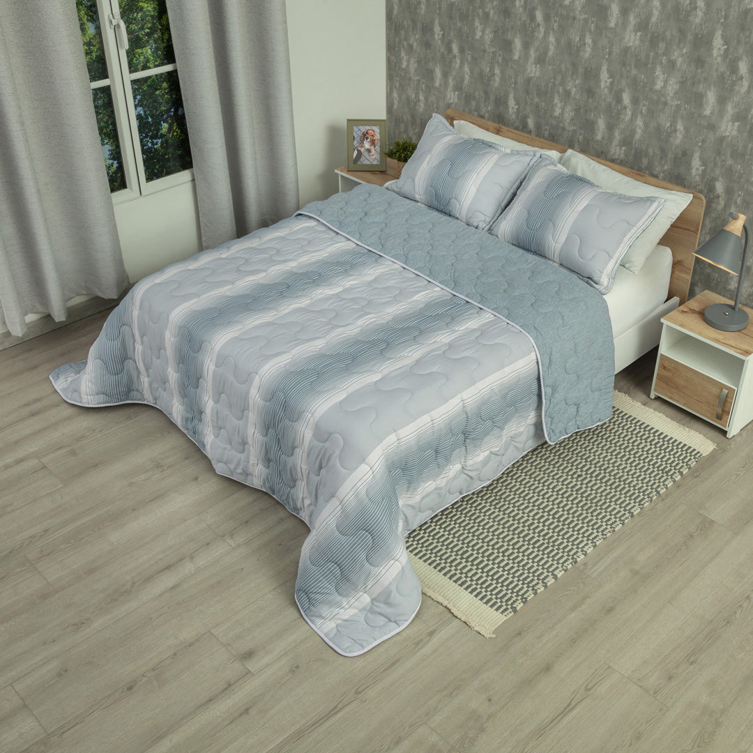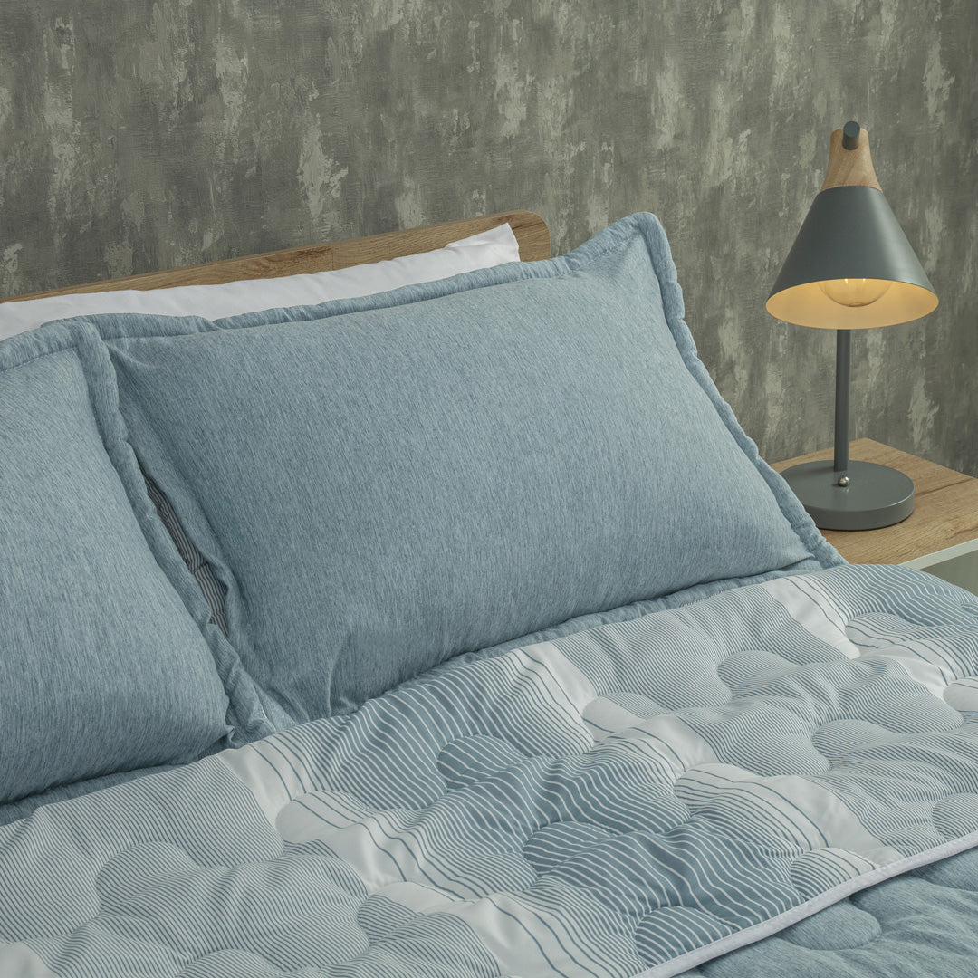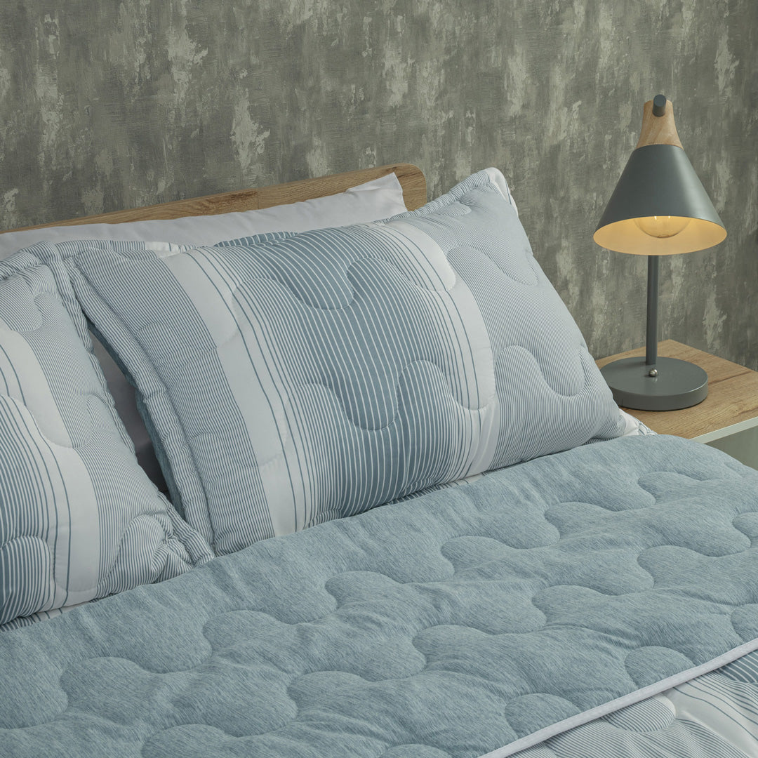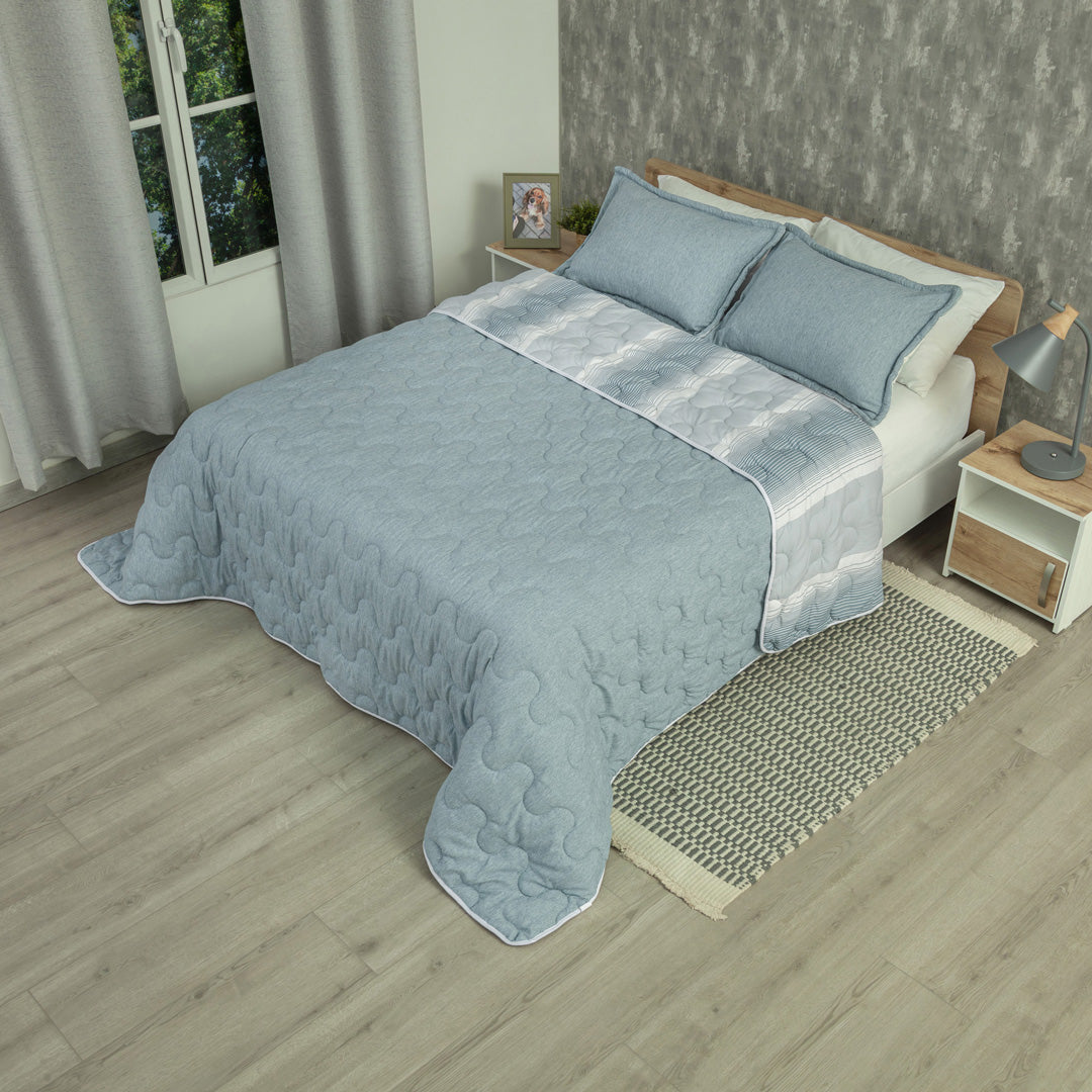 Cubrelecho Superacolchado Equilibrio Línea Azul Claro Confortable