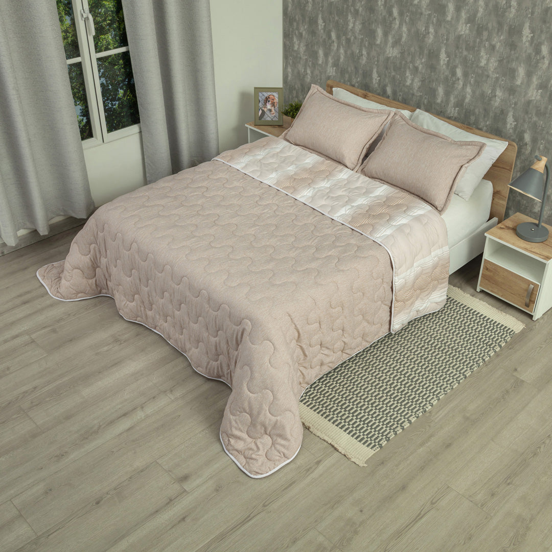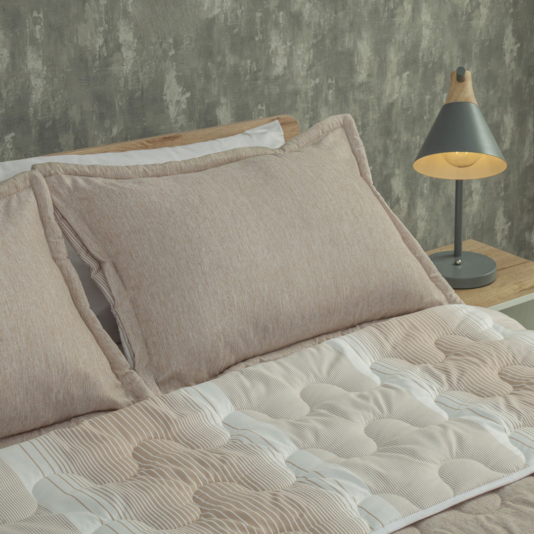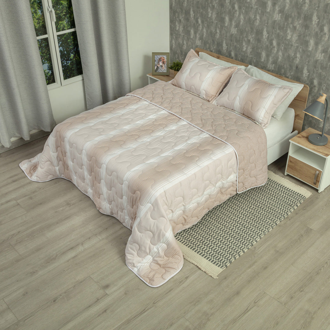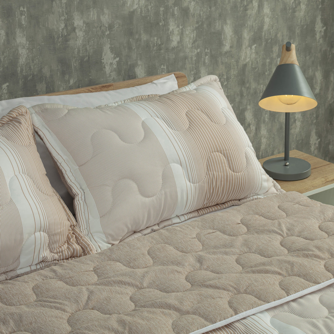 Cubrelecho Superacolchado Equilibrio Líneas Café Claro Confortable