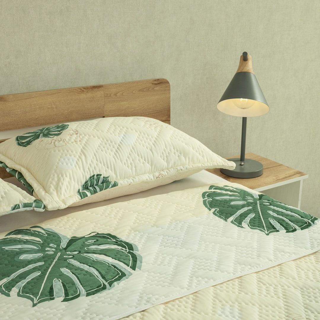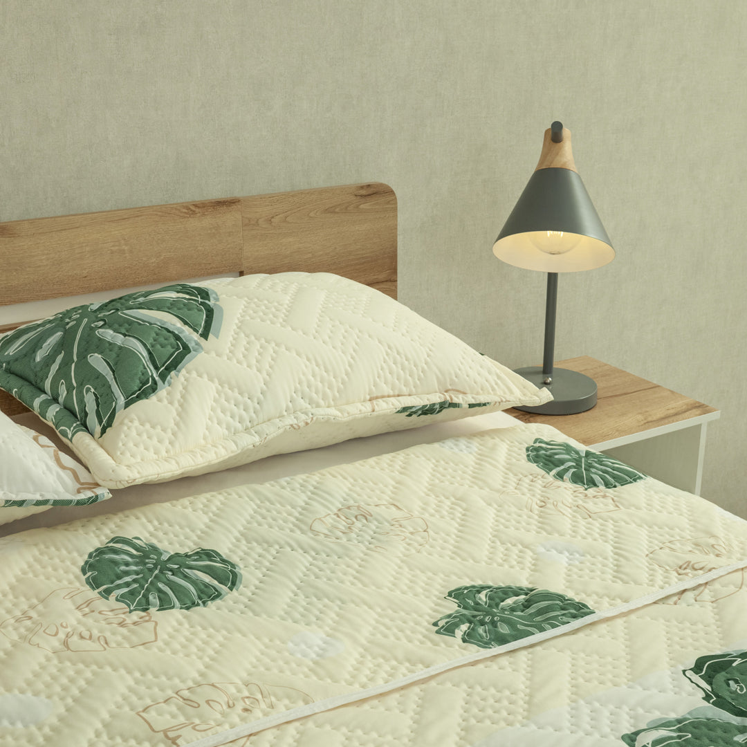 Cubrelecho Termosellado Doble Faz Style Eco Hojas Verdes