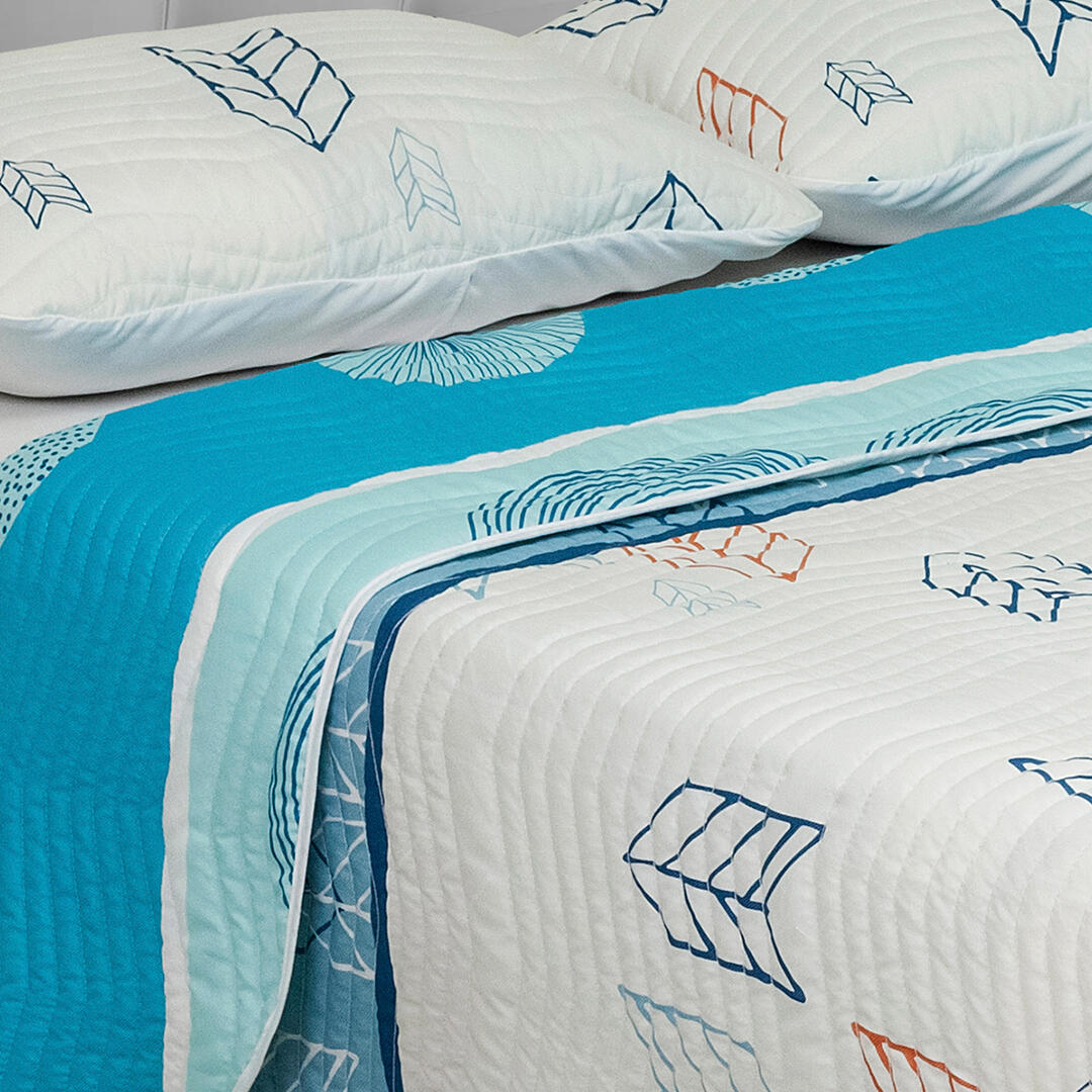 Cubrelecho Tipo Español Doble Faz Circulos Fondo Azul
