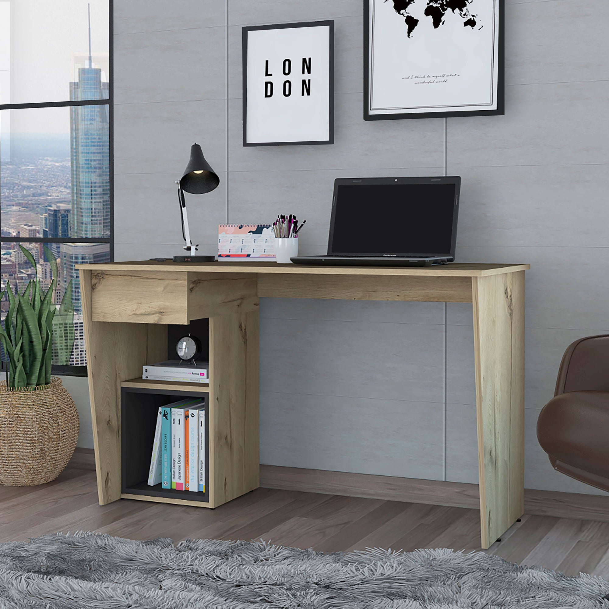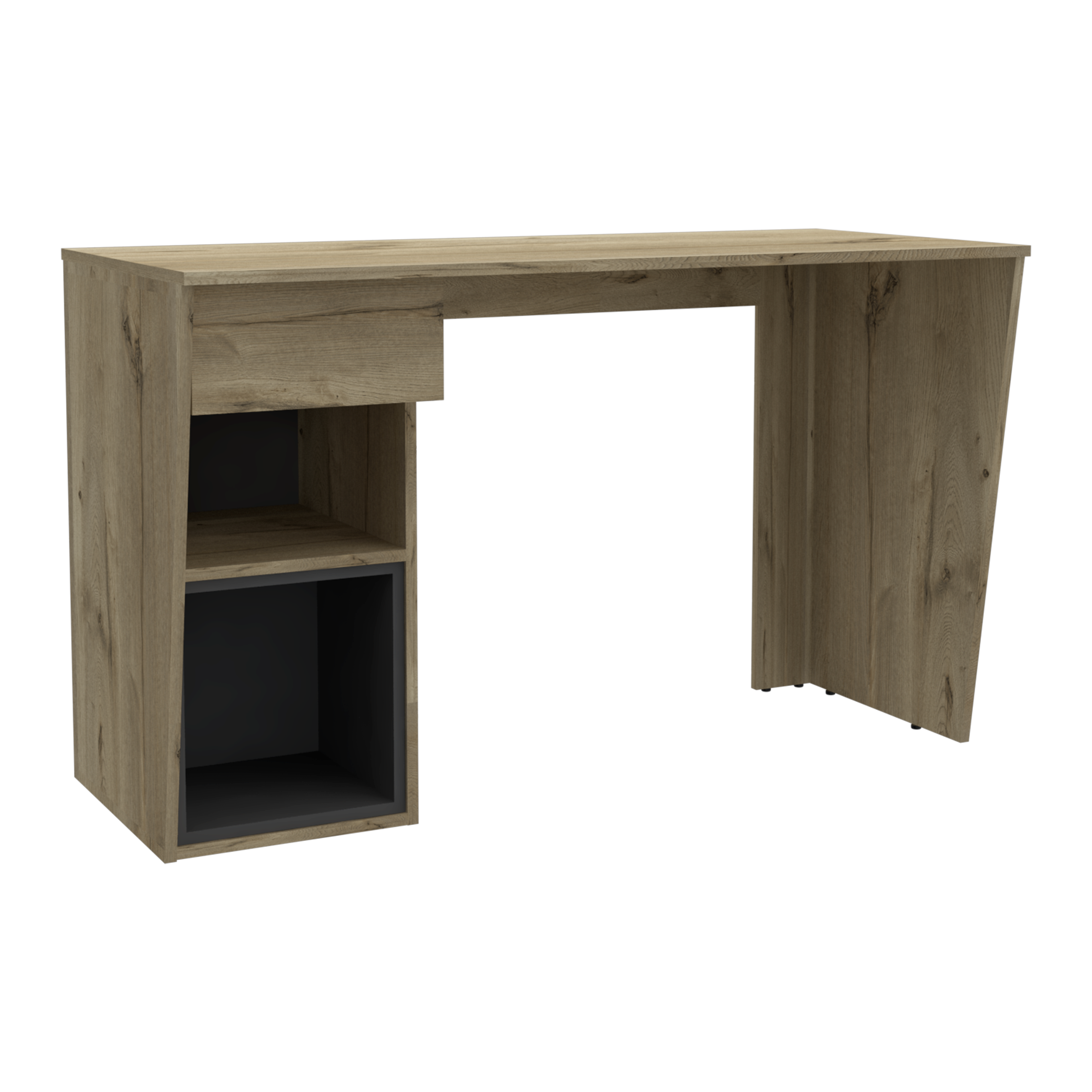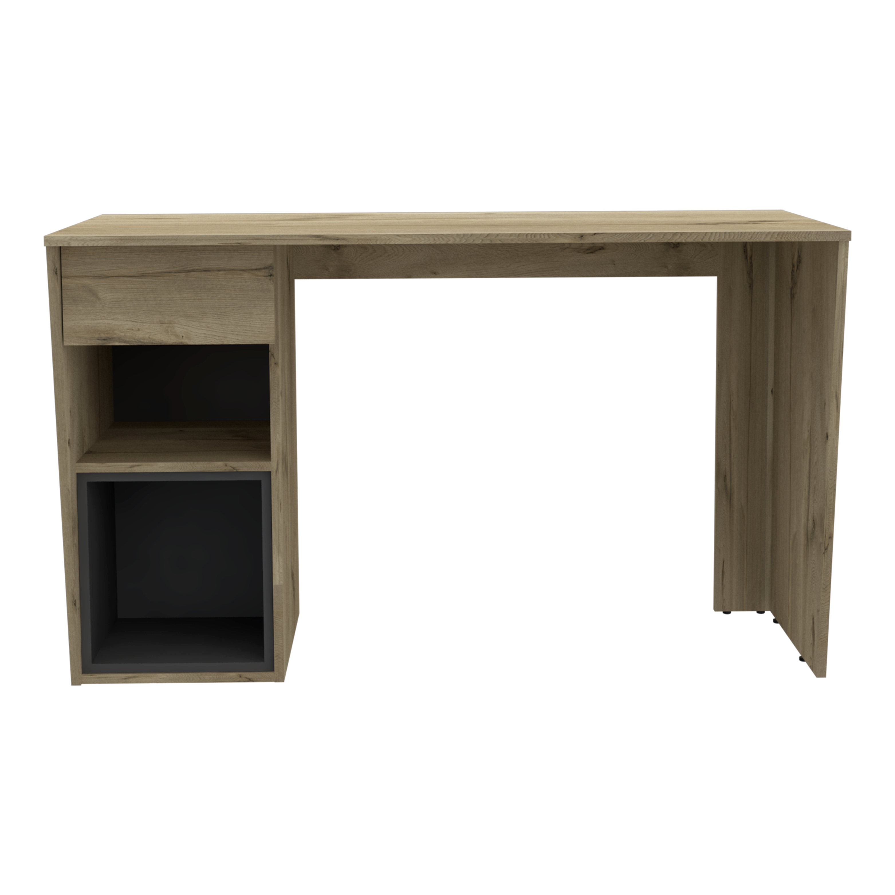 Un cajón y compartimentos para objetos de estudio o decorativos. NO INCLUYE ARMADO, Hecho de madera aglomerada, limpiar en seco, no productos abrasivos, ni humedad alta , La foto de este producto ha sido ambientada, por lo cual no incluye ningún adorno, ni accesorios, ni piezas adicionales ni ningún otro elemento que lo acompañan. El color presentado en la fotografía es una aproximación al color real.