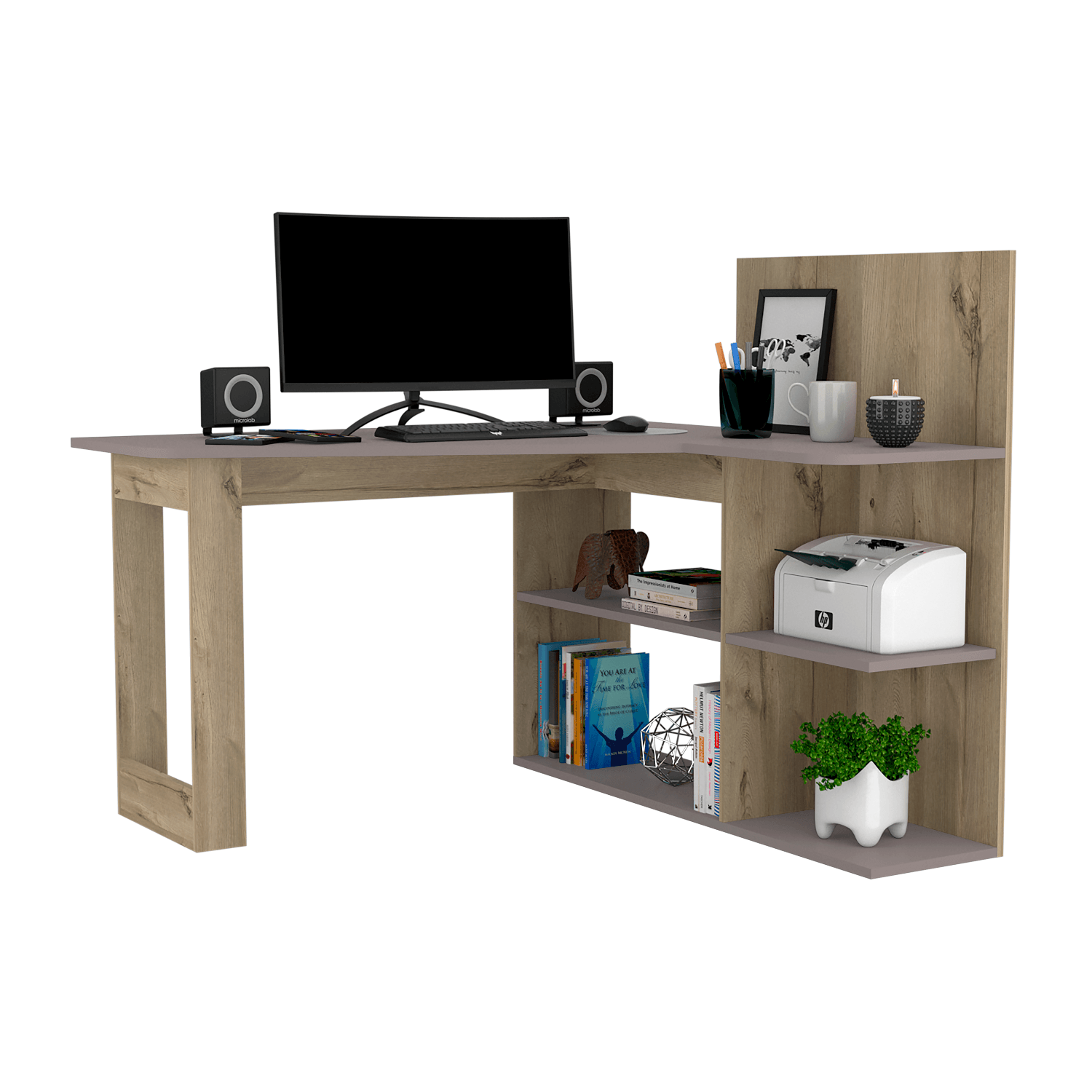 Amplia superficie de trabajo, entrepaños para ubicar libros y/o elementos decorativos, combinación de colores NO INCLUYE ARMADO, Hecho de madera aglomerada, limpiar en seco, no productos abrasivos, ni humedad alta , La foto de este producto ha sido ambientada, por lo cual no incluye ningún adorno, ni accesorios, ni piezas adicionales ni ningún otro elemento que lo acompañan. El color presentado en la fotografía es una aproximación al color real.