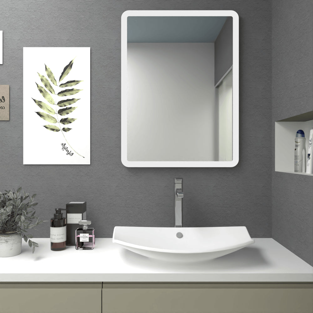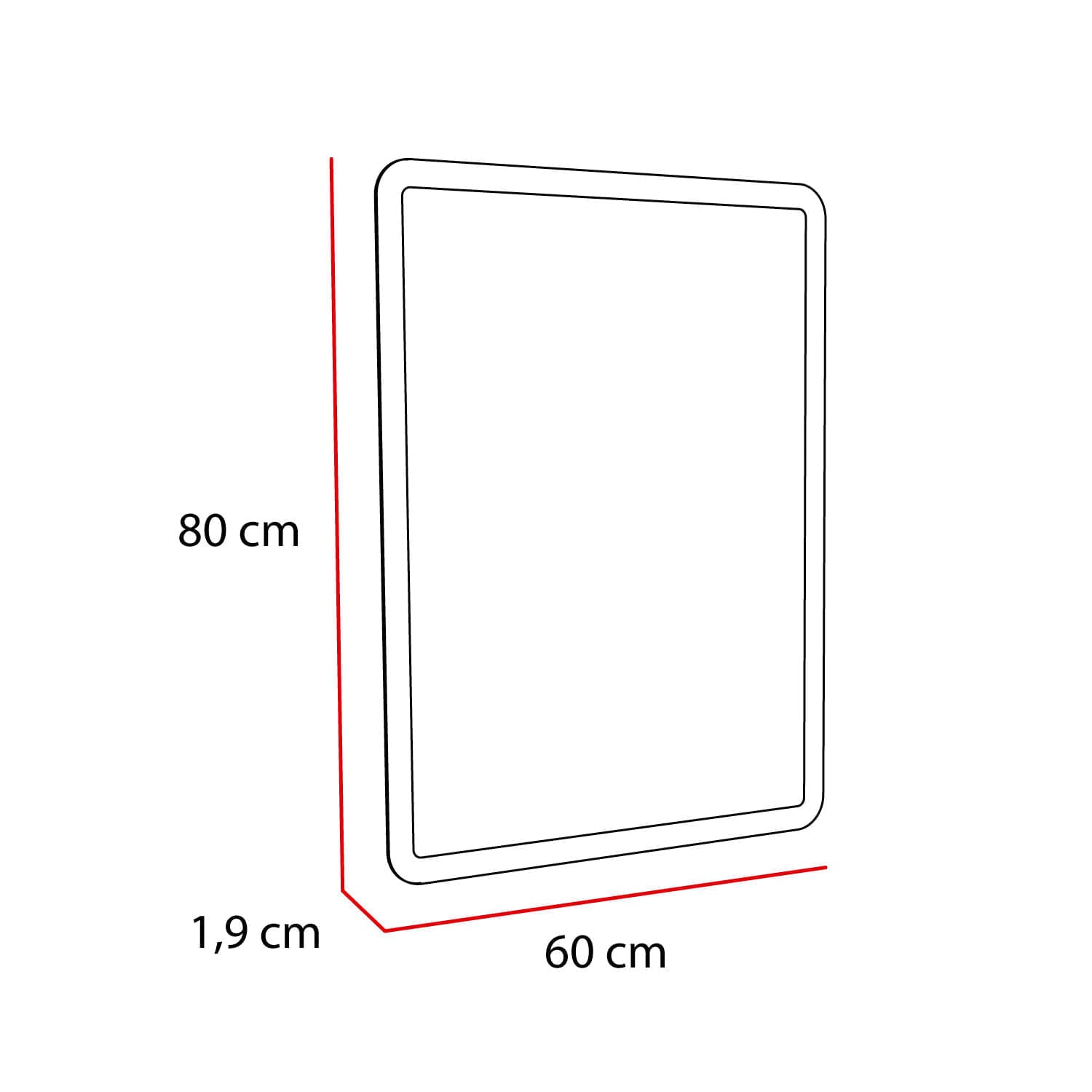 Espejo rectangular con bordes en sandblasting, y ensamble a pared con chaflan