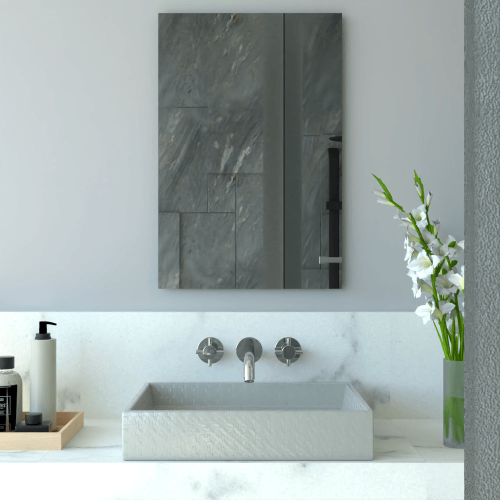 Espejo rectangular sencillo, ensamble a la pared: y ensamble a pared con chaflan