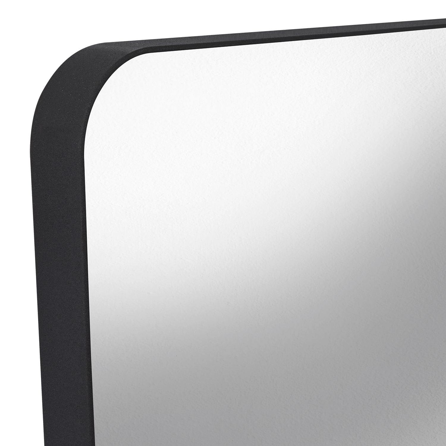 Espejo rectangular con bordes redondeados y marco metálico; cuenta con chaflán para su instalación horizontal