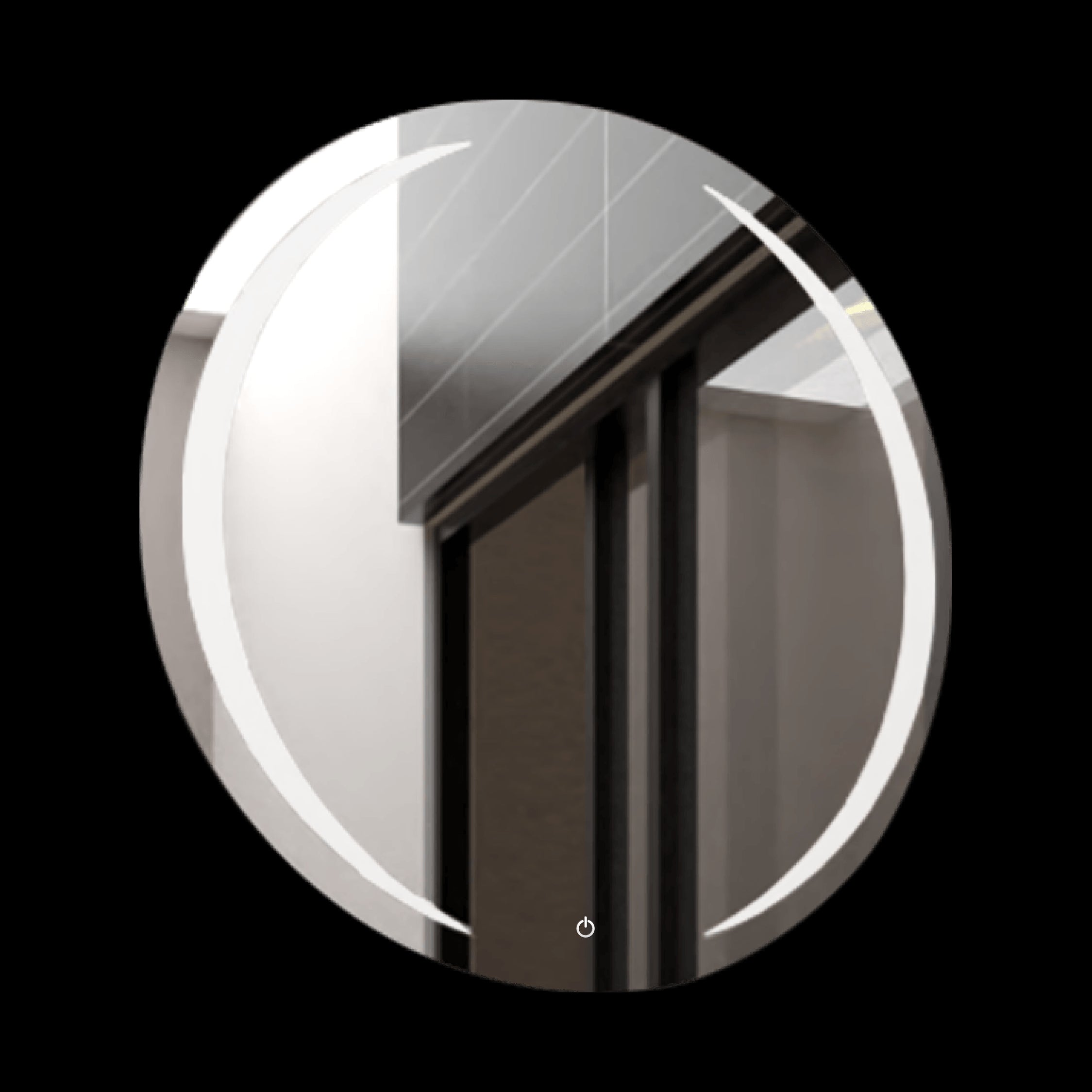 Espejo circular con diseño en sandblasting, con luz led+touch y ensamble a la pared con chaflan.