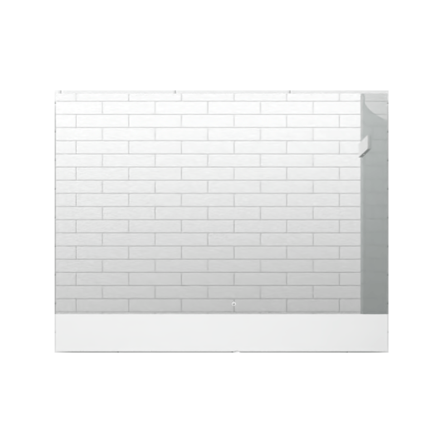 Espejo rectangular con una franja en sandblasting, con luz led+touch, ensamble a la pared con chaflan.