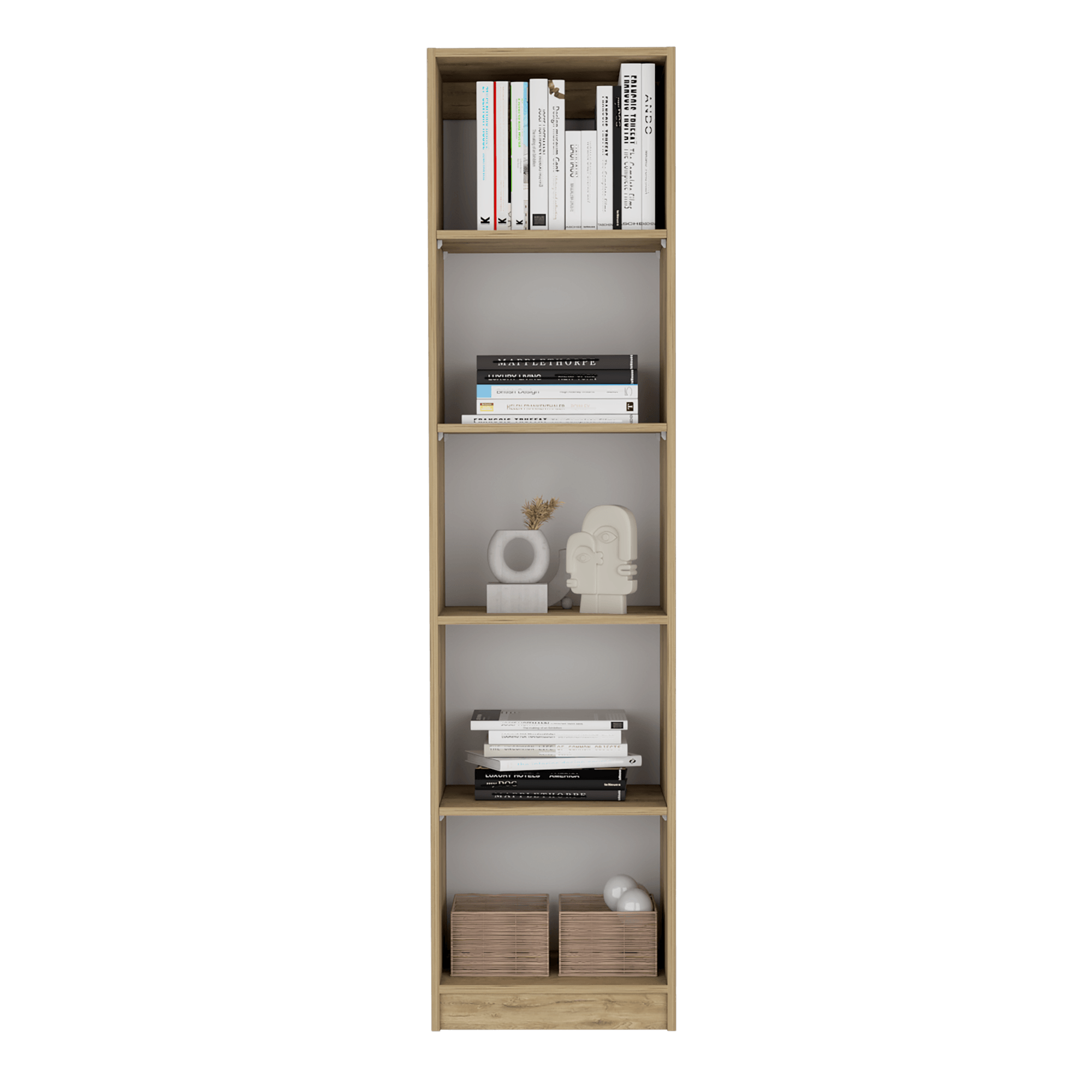Estante con espacio para libros y objetos decorativos, de facil armado e instalacion con medidas de: ALTO 180,6 ANCHO 45 FONDO 29,9
