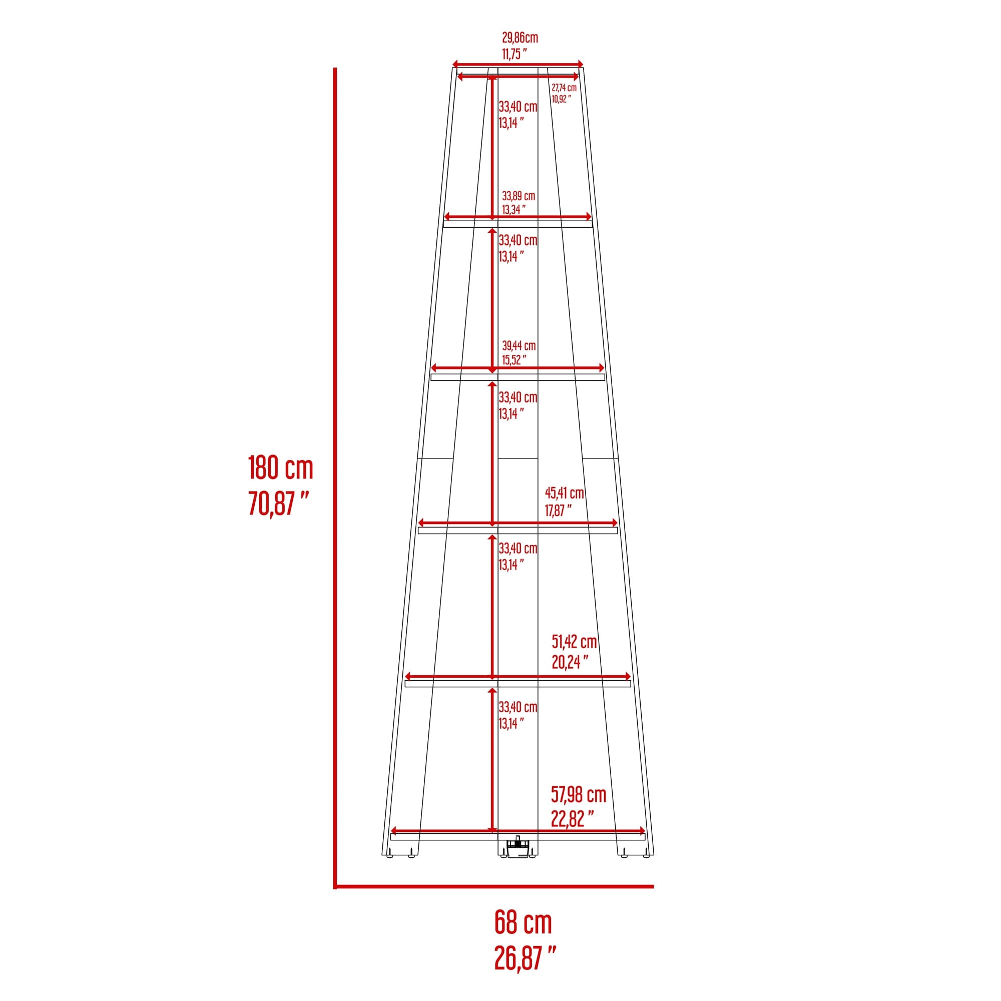 Estanteria esquinera facil de ensamblar, entrepaños para ubicar articulos decorativos, diseño moderno y minimalista con medidas de: ALTO 180 ANCHO 68,5 FONDO 43,2