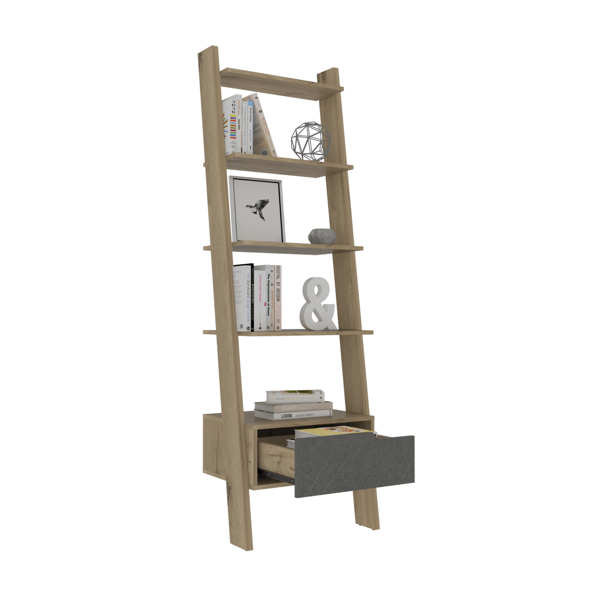 Biblioteca con entrepaños para ubicar libros y objetos decorativos y cajón de almacenamiento . Hecho de madera aglomerada, limpiar en seco, no productos abrasivos, ni humedad alta , La foto de este producto ha sido ambientada, por lo cual no incluye ningún adorno, ni accesorios, ni piezas adicionales ni ningún otro elemento que lo acompañan. El color presentado en la fotografía es una aproximación al color real. Medidas en centímetros: Alto: 178,6 Ancho: 56 Profundo: 39 Peso: 21,8 Kg NO INCLUYE ARMADO, Hecho de madera aglomerada, limpiar en seco, no productos abrasivos, ni humedad alta , La foto de este producto ha sido ambientada, por lo cual no incluye ningún adorno, ni accesorios, ni piezas adicionales ni ningún otro elemento que lo acompañan. El color presentado en la fotografía es una aproximación al color real.