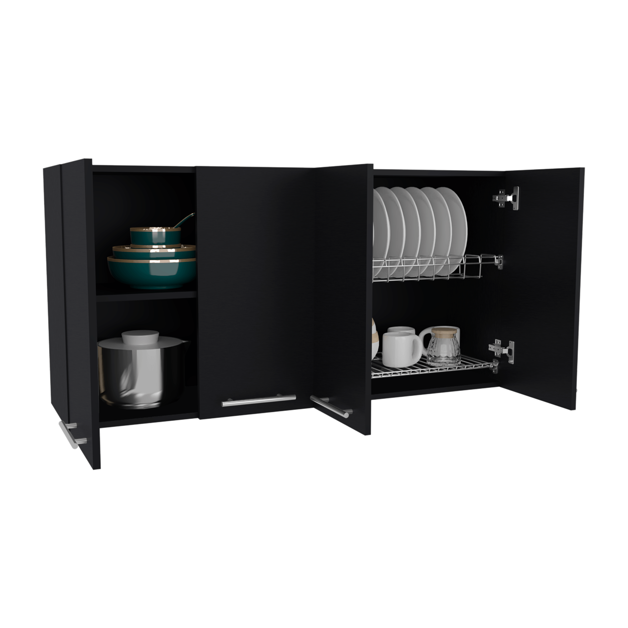 Gabinete que incluye locero y portavasos, manijas en aluminio, amplios espacios para guardar implemento de cocina y alimentos con medidas de: ALTO 60 ANCHO 150 FONDO 31,5