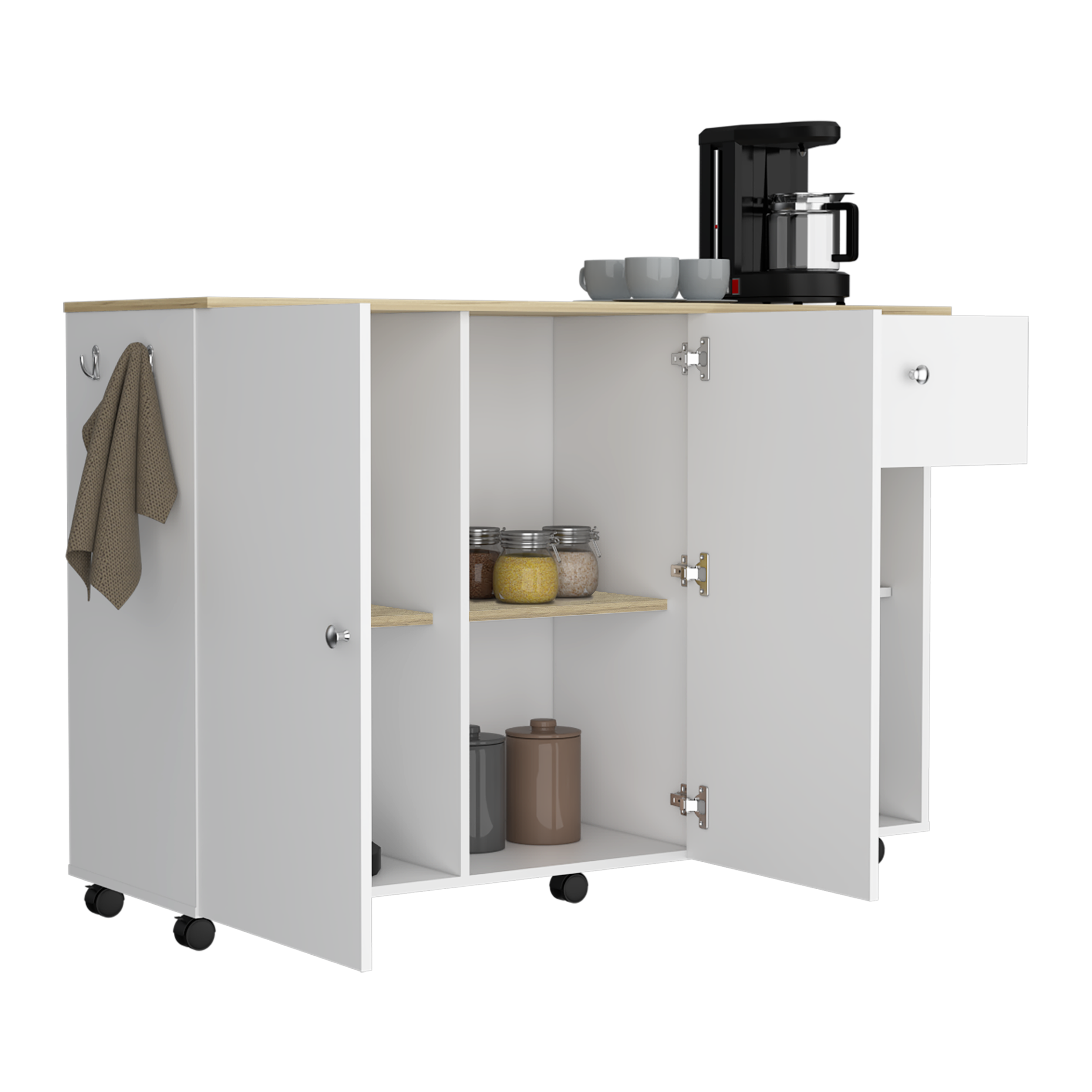Isla De Cocina Movil 92 X 126 Rta Blanco Macadamia
