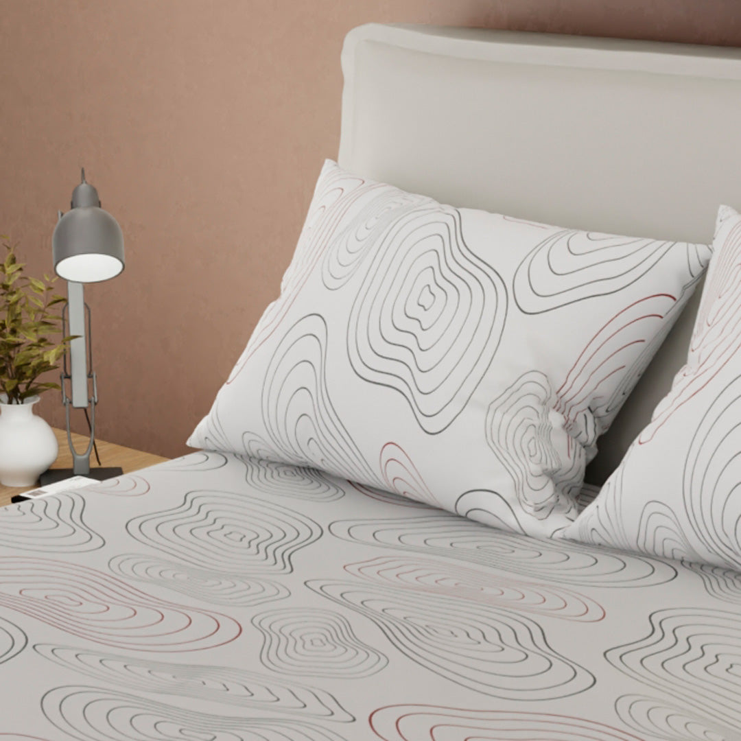 Juego De Sábanas 180 Hilos Círculos En Fondo Blanco Con Línea Gris Confortable