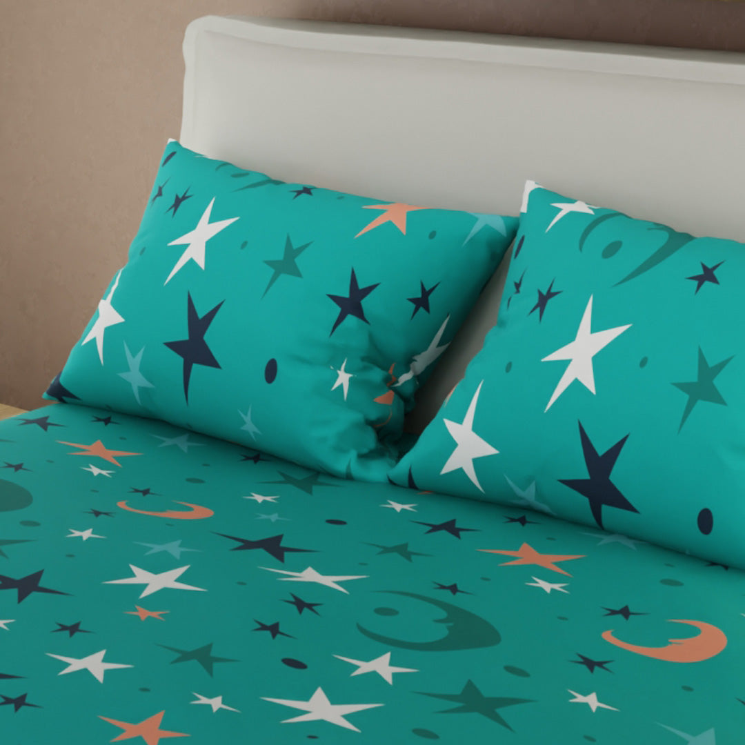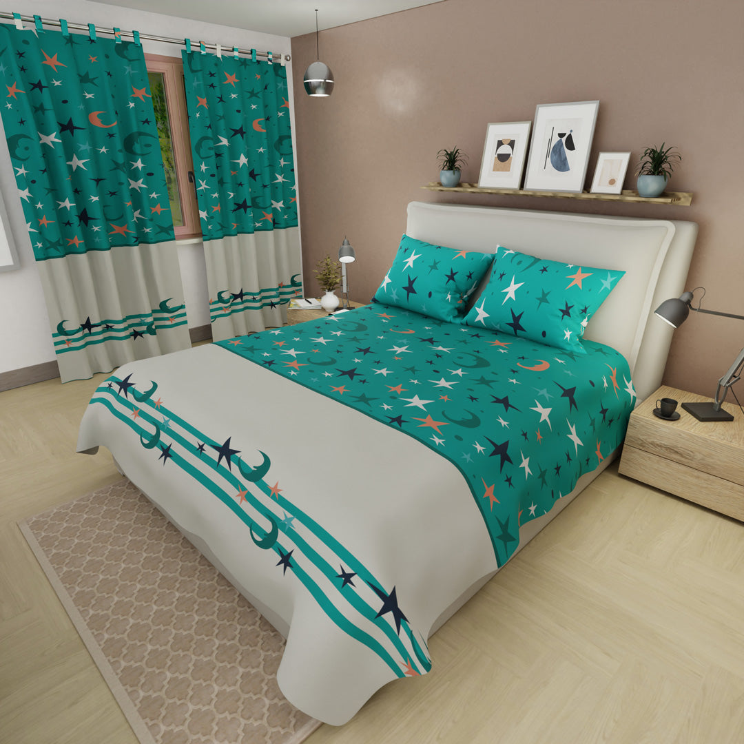 Juego De Sábanas Con Cortinas Universo Interior Aguamarina