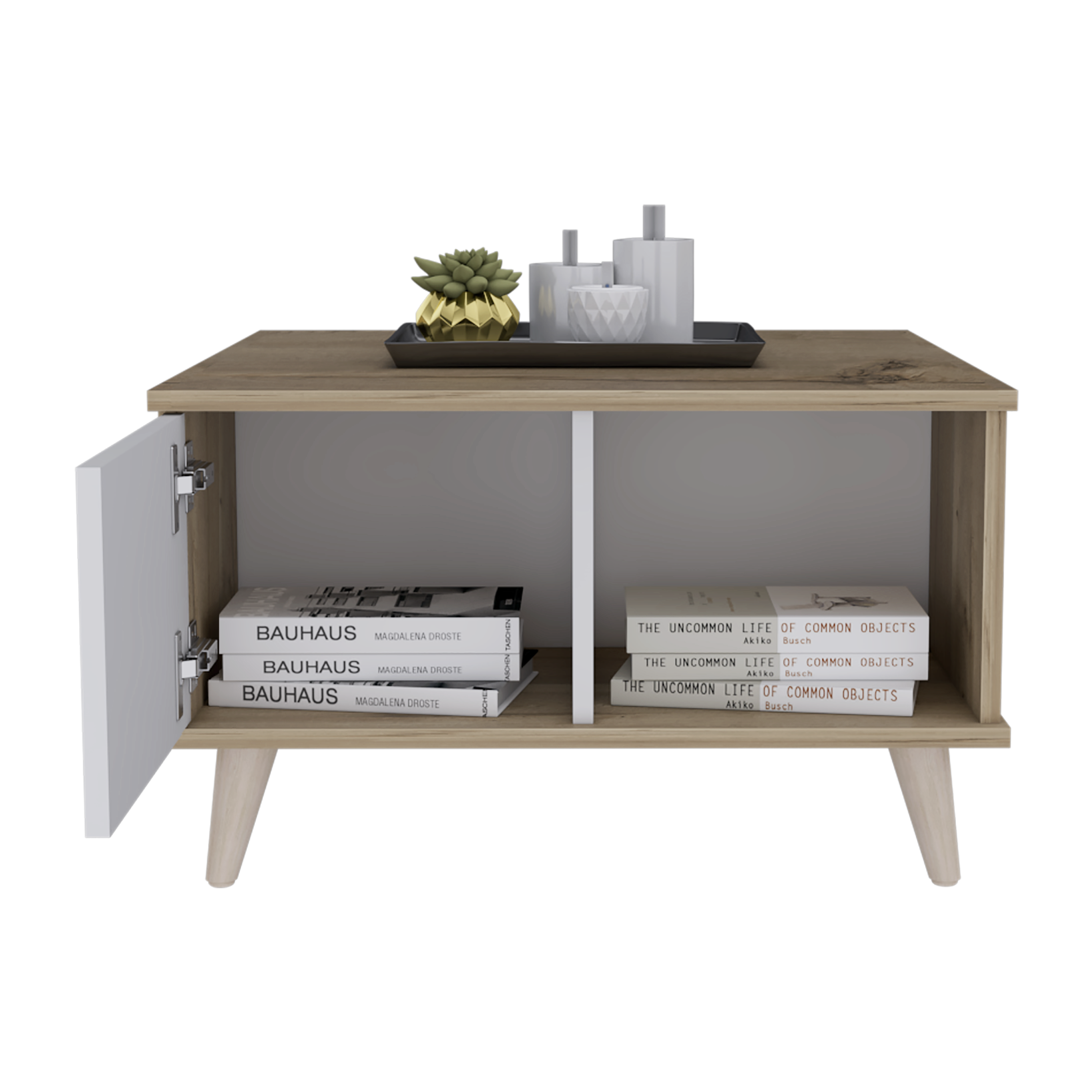 Patas de madera. Dos puertas. Espacio para ubicar libros y objetos decorativos. Posee unas dimensiones de Alto: 123,4 cm. Ancho: 38,1 cm. Fondo: 35,6 cm. Peso: 17 Kg