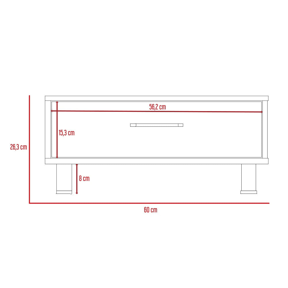 Preciosa mesa de sala hecha de madera aglomerada de 15mm. Cuenta con un diseño moderno, espacio para colocar objetos decorativos, cajon deslizable con espacio interior y patas en acero cromado con nivelador. Medidas: 26,3cm alto, 60cm ancho, 60cm fondo y peso de 13,69kg NO INCLUYE ARMADO, Hecho de madera aglomerada, limpiar en seco, no productos abrasivos, ni humedad alta , La foto de este producto ha sido ambientada, por lo cual no incluye ningún adorno, ni accesorios, ni piezas adicionales ni ningún otro elemento que lo acompañan. El color presentado en la fotografía es una aproximación al color real.